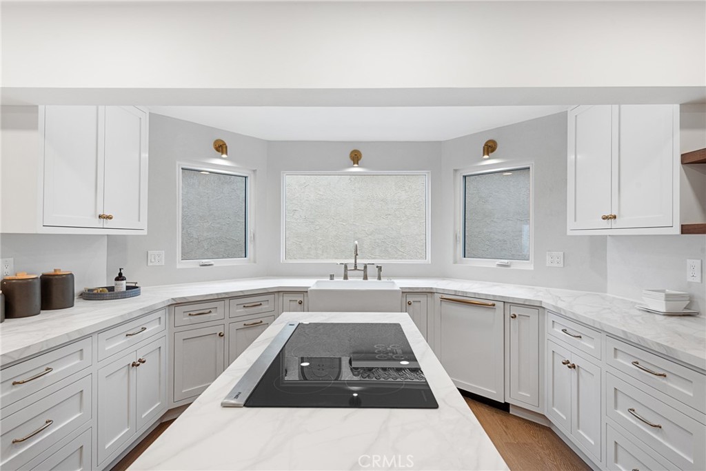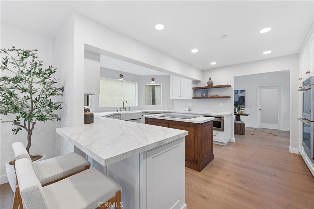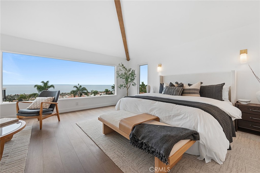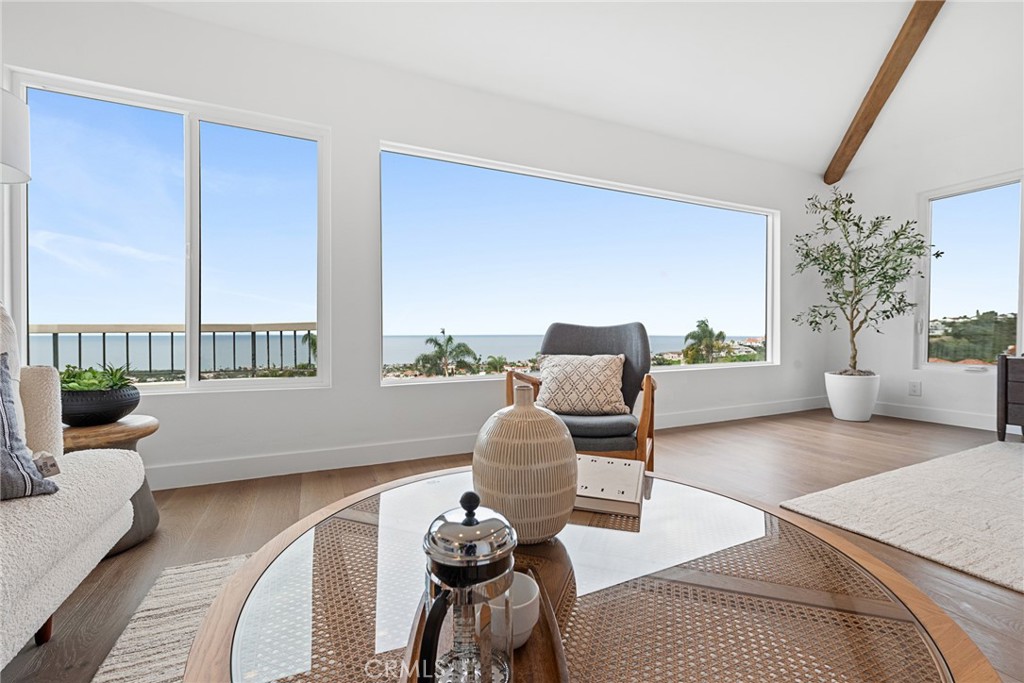 Showcasing ocean and mountain views in the highly sought-after Mariners Point community of Southeast San Clemente, this stunning fully remodeled coastal residence offers designer finishes and a layout designed around the views. From the moment you step inside, the home is intentionally oriented to maximize light and indoor-outdoor flow—framing Catalina sunsets and ocean breezes. VAULTED CEILINGS in every bedroom and living room create volume, light, and architectural drama. New bespoke cabinetry spans the kitchen, closets, bathrooms, and laundry area, blending warm white oak elements with a crisp contemporary aesthetic. The chef’s kitchen features a custom-stained oak island with floating shelves, cabinetry painted in Benjamin Moore Dove White, a Sydney Harbour plaster backsplash in the color Rubble, and a full suite of MONOGRAM luxury appliances including a fully integrated French-door bottom freezer refrigerator, induction cooktop, and built-in double oven. KD Arabescatto White Satin countertops continue through the kitchen and bathrooms for a cohesive elevated finish. New Vandyck Progettista hardwood floors run through the main living spaces, enhancing the modern coastal flow and open-concept design. Wide bifold doors connect the main living areas to the outdoors, creating a seamless transition for entertaining and view enjoyment. Lighting has been curated throughout, including custom kitchen sconces by MikeLightingStudio (Etsy), dining lighting from Lulu and Georgia, statement staircase alabaster chandeliers from Arhaus, plus hand-painted beams with custom finishes from Vista Paints and track lighting in the living room and study. Each bathroom has been reimagined with designer tile selections including Celine, Sahara White, Shoji White, and honed basketweave detailing for a spa-inspired feel; the primary bath features a 66” freestanding solid surface stone resin tub, Delta Cassidy Champagne Bronze faucets, and premium lighting from Rejuvenation. Exterior upgrades include smooth Glacier White stucco, a steel garage door by Unique Garage Doors, new front entry hardware, and exterior fixtures from Troy Lighting, plus a newly paved and landscaped courtyard, custom decking, glass railings for unobstructed sightlines, and exterior deck/courtyard lighting that brings the outdoor experience to life at night. A rare opportunity to own a magazine-worthy coastal retreat with ocean views in one of San Clemente’s most coveted coastal enclaves.