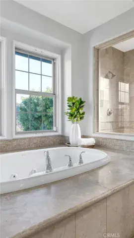 Every detail of this home has been meticulously upgraded, from the 24” diagonal travertine flooring, real hardwood, wrought iron staircase, dual A/C units, upgraded baseboards, crown molding and plantation shutters