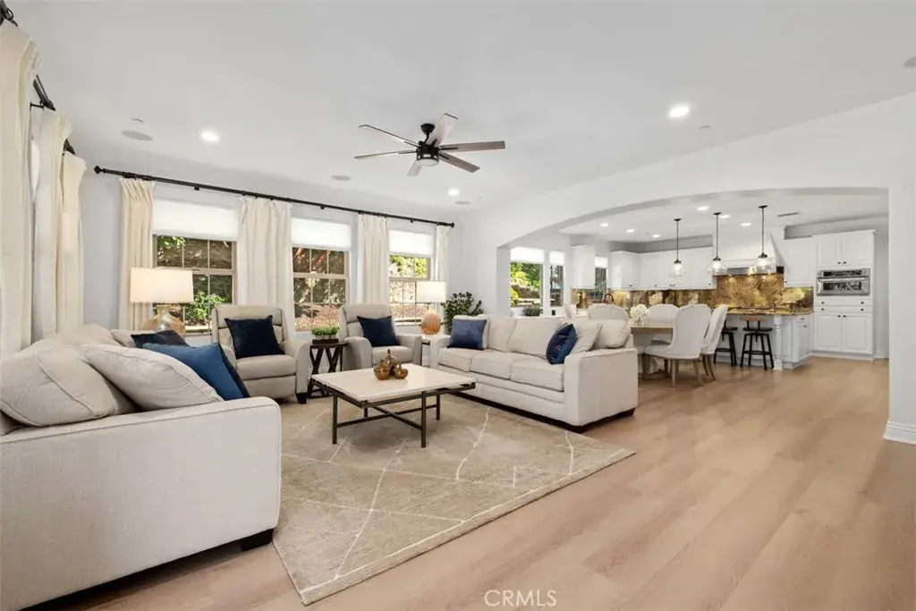 Welcome to 25 Via Nerisa in sought-after Talega of San Clemente on an oversized, private lot. This freshly remodeled residence offers 4 spacious ensuite bedrooms plus an office, loft, and custom built-in study area, providing flexible living spaces for work, relaxation, and entertaining. From the moment you enter, you’ll appreciate the new vinyl wood plank flooring throughout, fresh interior paint, custom blinds, updated ceiling fans, and new cabinet hardware that create a clean, contemporary feel. The private downstairs office is thoughtfully designed with custom built-in shelving, cabinetry, and desk space, separated by a stylish barn door. A large downstairs bonus room offers versatility as a game room, media space, or formal dining room. The gourmet kitchen opens seamlessly to the great room and dining area. Designed for both everyday living and entertaining, it features: Granite countertops, Stainless steel appliances, 8-burner gas range, Double ovens, Oversized built-in refrigerator, Stainless steel sink, Custom lighting, Expansive walk-in pantry. Upstairs, a quiet loft and dual built-in study desks with drawers and cabinetry provide the perfect homework or creative space. The primary suite spans the entire back of the home, offering exceptional privacy along with a private balcony, dual walk-in closets, and a cozy fireplace. The spa-inspired primary bath includes custom mirrors, updated fixtures, a large walk-in shower, and a soaking tub. Each secondary bedroom features a beautifully remodeled ensuite bath with quartz countertops, marble flooring, new fixtures, mirrors, sinks, and hardware. Even the laundry room has been elevated with new quartz counters, sink, fixtures, and marble floors. Step outside and experience true indoor-outdoor California living. The expansive wrap-around yard includes: Gated courtyard entry with bubbling fountain, Outdoor fireplace, Firepit with seating area, Turf play spaces, New Built-in Blaze BBQ grill, Private putting green. Additional upgrades include Google Smart Home and Security systems, Moen Flo water shutoff for leak detection and conservation, earthquake gas shutoff valve, owned solar panels with new solar battery, and new Saferacks garage storage system in the oversize 3 car garage with extra storage, built-in cabinets, and a work bench. All of this is located within the master-planned community of Talega, where residents enjoy beautiful parks, a Swim Club, scenic trails, and award-winning schools.