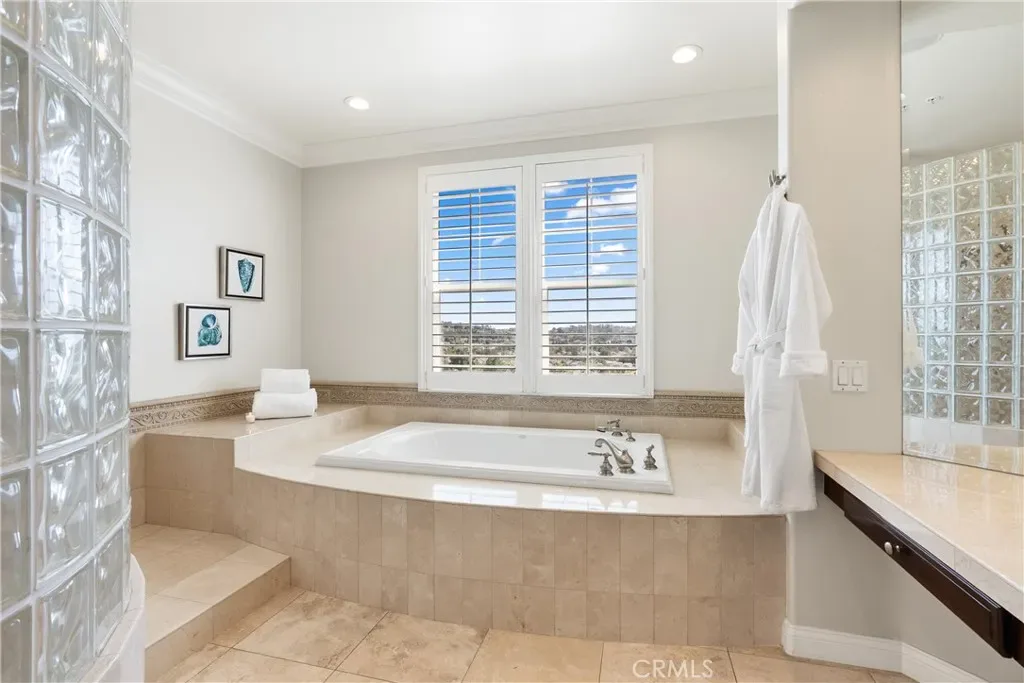 Upstairs, the luxurious primary suite is a true retreat with a sitting area, fireplace, oversized custom walk-in closet, private balcony with ocean views, and a spa-inspired bath with dual sinks, vanity, soaking tub, and walk-in shower. Three additional bedrooms, including en-suite options and a Jack-and-Jill layout, plus a bonus room or optional sixth bedroom, provide exceptional versatility.