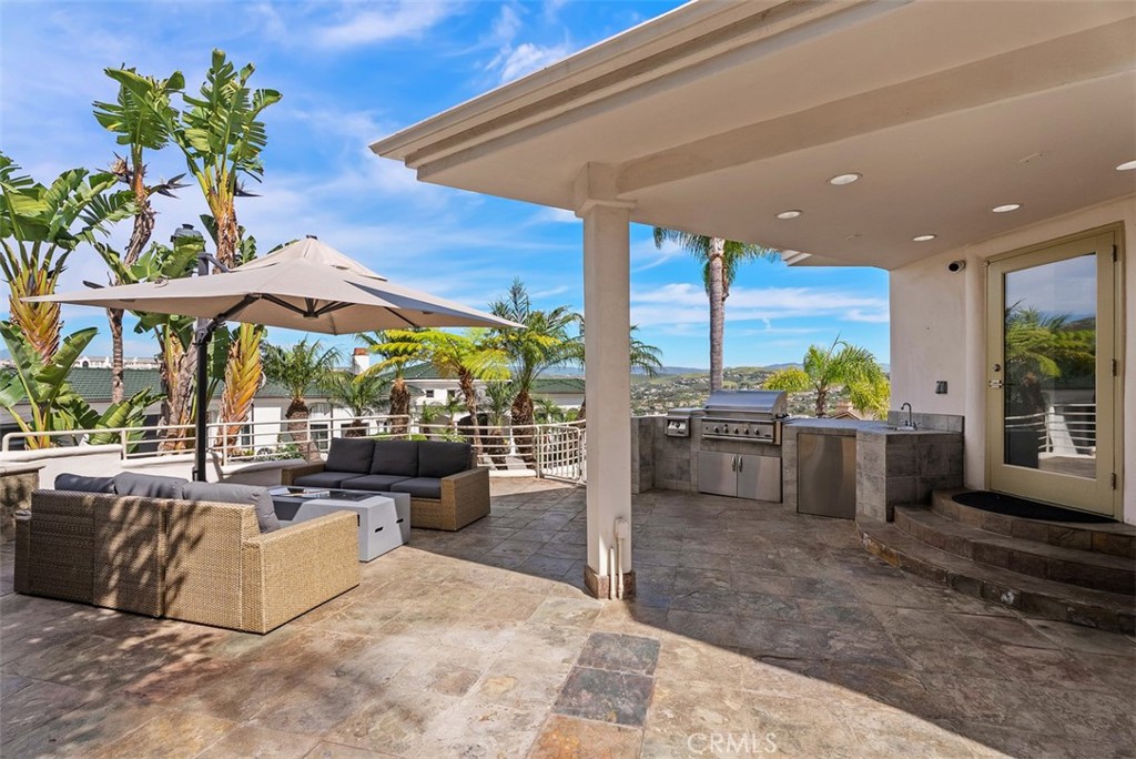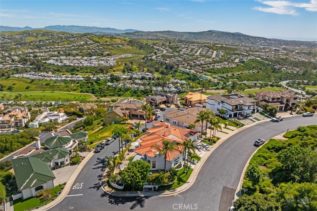 Captivating Views from this Prestigious Sea Pointe Estates property! Perched high on a hill in the exclusive guard-gated community of Sea Pointe Estates, this custom 5-bedroom, 5.5-bath estate offers privacy, elegance, and panoramic views. Situated on a single-loaded street on a unique triangular lot, back stree is a cul-de-sac the setting provides exceptional privacy and stunning surroundings. Designed with an open-concept layout, the home features a main-floor primary suite, executive office, and spacious 3-car garage—all at street level. Formal living and dining rooms share a beautiful fireplace, complemented by a warm and inviting family room and a chef’s kitchen built for entertaining. The kitchen boasts a massive island, stainless steel appliances, an oversized built-in side-by-side refrigerator, a commercial-grade gas range with ovens, new white cabinetry, and black granite countertops. Seamlessly blending indoor and outdoor living, the kitchen opens to a covered outdoor kitchen and dining area. The expansive wraparound yard is finished in elegant slate with water features, lush tropical landscaping, and garden areas. Enjoy ocean breezes along with sweeping hill and mountain views, plus a peek-a-boo ocean view. All additional bedrooms offer privacy, each with its own bathroom and direct access to exterior living spaces. Every room in this remarkable estate enjoys a view, making it a true entertainer’s paradise. Community amenities further elevate the lifestyle this exceptional property provides. Conveniently located to dining, shopping, freeway, and much more. Minutes from downtown San Clemente, Dana Point, and San Juan Capistrano.