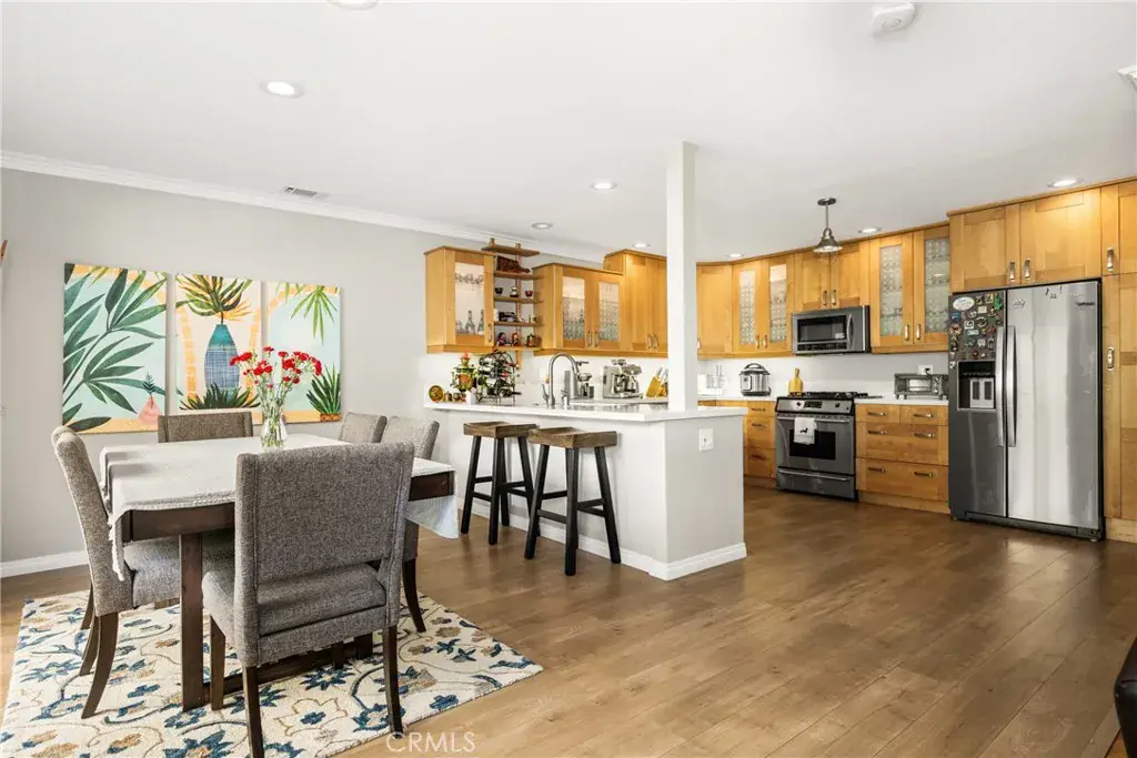 Outdoor living is just as impressive. An expansive private patio offers the perfect space for morning coffee or sunset relaxation, while the charming deck area is ideal for outdoor dining or lounging under the California sky.
