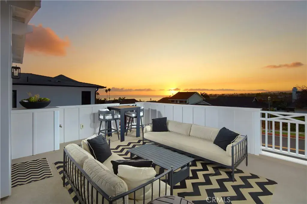 Once inside, you’ll find approximately 1,000 square feet of outdoor living space, including covered ocean-view verandas, a rooftop deck, and a California Room, providing a variety of spaces to unwind while enjoying the stunning Pacific backdrop.