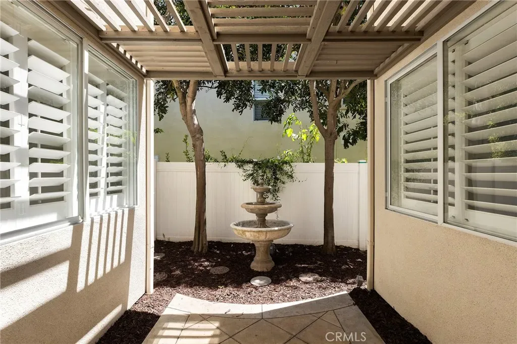 Set within the Solana enclave of Talega, 17 Camino Azulejo unfolds as a home designed for both connection and retreat, where light, space, and thoughtful transitions shape the rhythm of daily living. The living room welcomes you with soaring double-height ceilings and an abundance of natural light, creating an open and airy first impression. Wood-look tile flooring spans the main level, offering both durability and warmth, while the floor plan draws you inward to a private interior courtyard anchored by a statement fountain, creating a quiet architectural moment at the heart of the home. The layout is both functional and intentional, with a main-level bedroom and full bath offering flexibility for guests, extended stays, or a private office. The family room centers around a stacked-stone fireplace and flows effortlessly into the open-concept kitchen, where a granite island and stainless steel appliances create a natural gathering place. Upstairs, a generous loft offers versatility as a media room, workspace, or potential fifth bedroom. The primary suite is privately positioned and features a spacious bath with dual sink vanity, soaking tub, walk-in shower, and walk-in closet. A private balcony looks out over lush landscaping and mature trees, offering a peaceful setting for morning coffee or evening wind-downs. Two additional bedrooms are thoughtfully situated and share a balcony that provides an elevated vantage point overlooking the neighborhood. Surrounded by greenery and backing to a scenic pathway that leads to Talega Park, the home enjoys a rare sense of privacy with no neighbors directly behind. The backyard, courtyard, and multiple balconies create a series of outdoor spaces designed for both intimate moments and larger gatherings, all framed by natural beauty. Leased solar adds efficiency, while the location places you within one of San Clemente’s most sought-after master-planned communities. Talega offers miles of scenic trails, neighborhood parks, award-winning schools, and a strong sense of community, all just moments from the coastline. A home where indoor and outdoor living are seamlessly connected, offering comfort, privacy, and a refined sense of place within one of San Clemente’s most established communities.