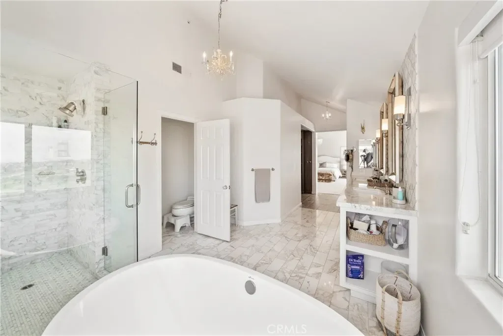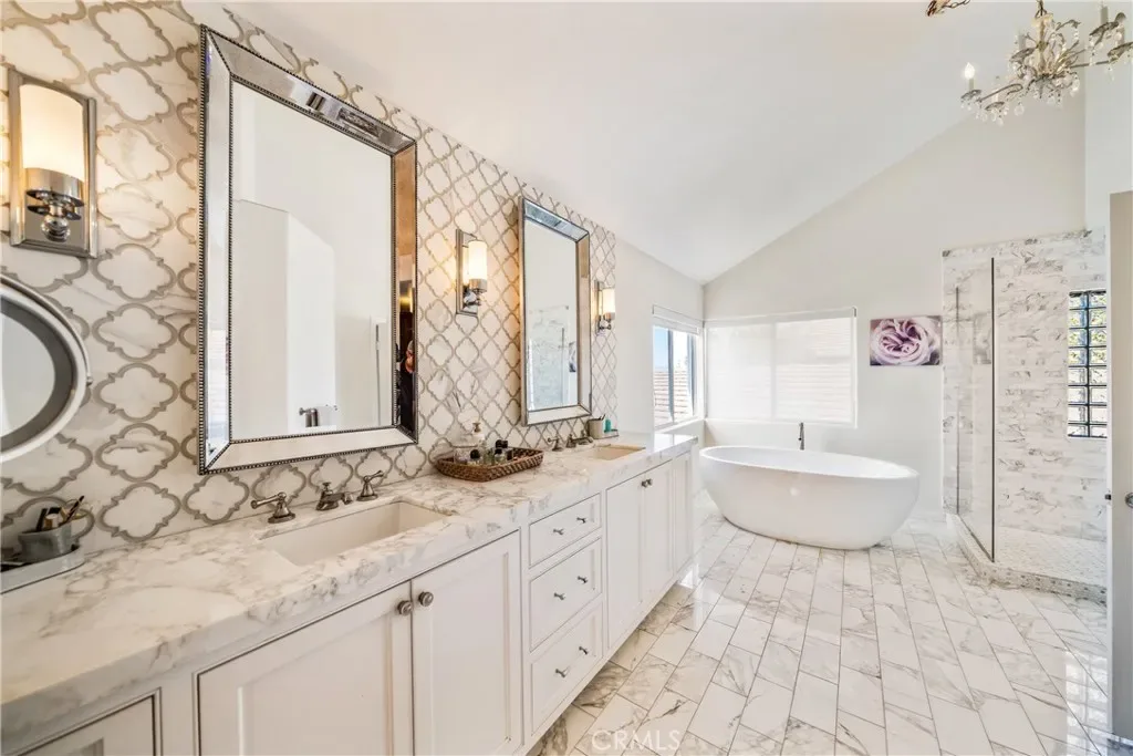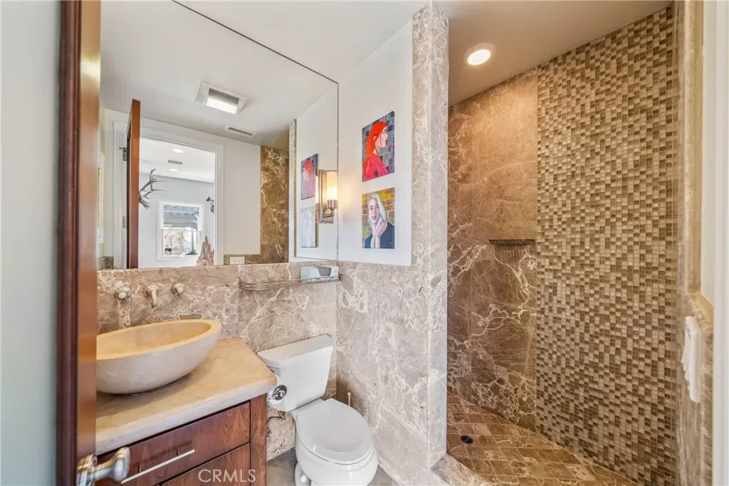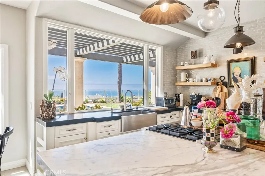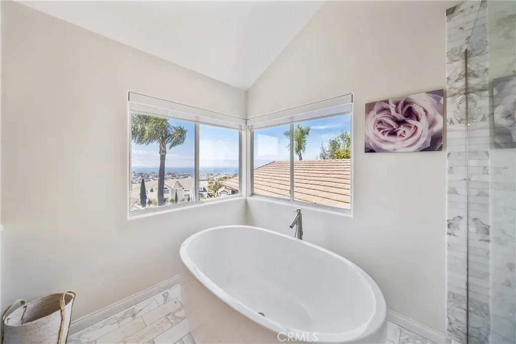 The primary suite is a true retreat with commanding ocean views a custom built walk in closet, and glass doors that open to a breathtaking sundrenched deck with panoramic ocean views. The primary bath is a luxurious retreat with custom stonework, and a soaking tub with more ocean views.