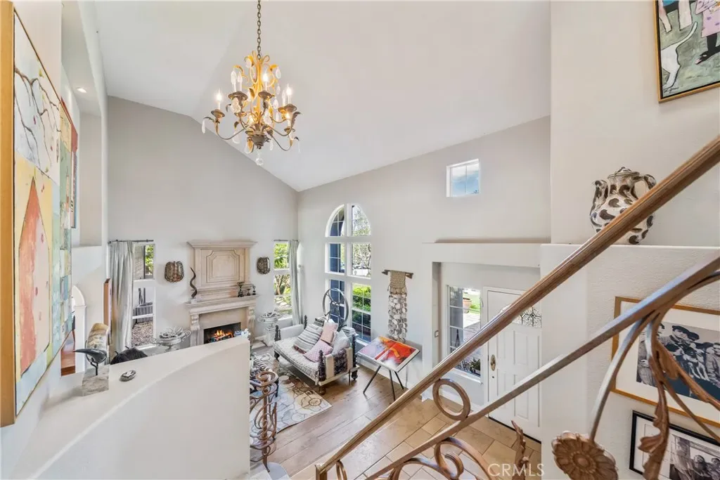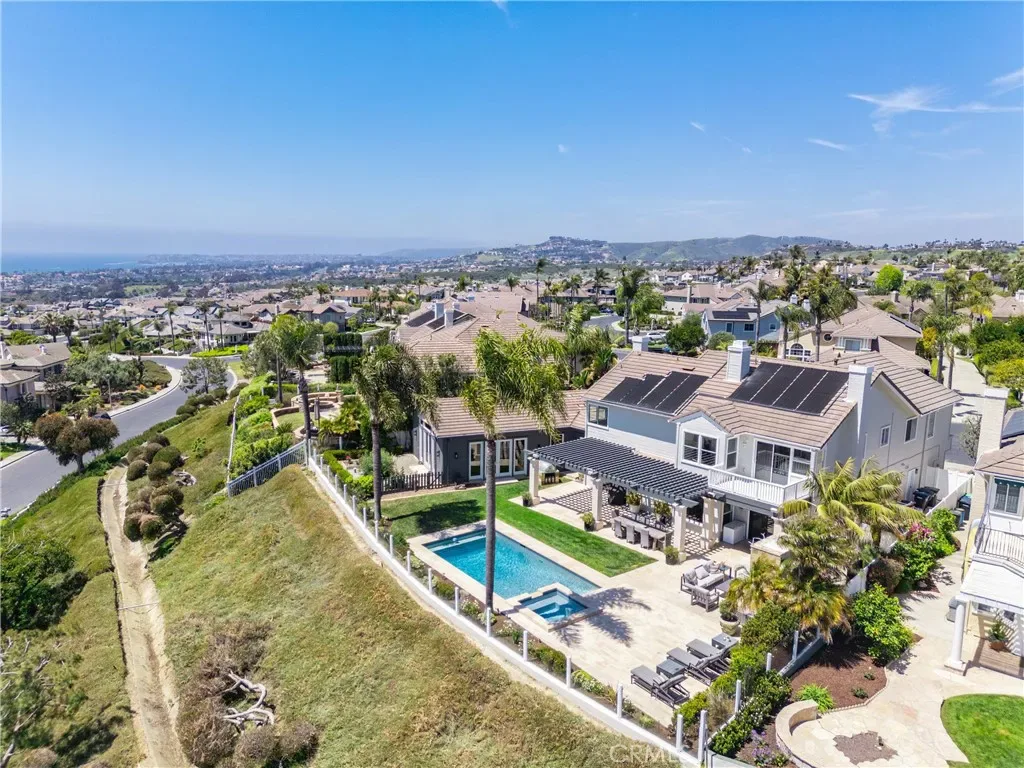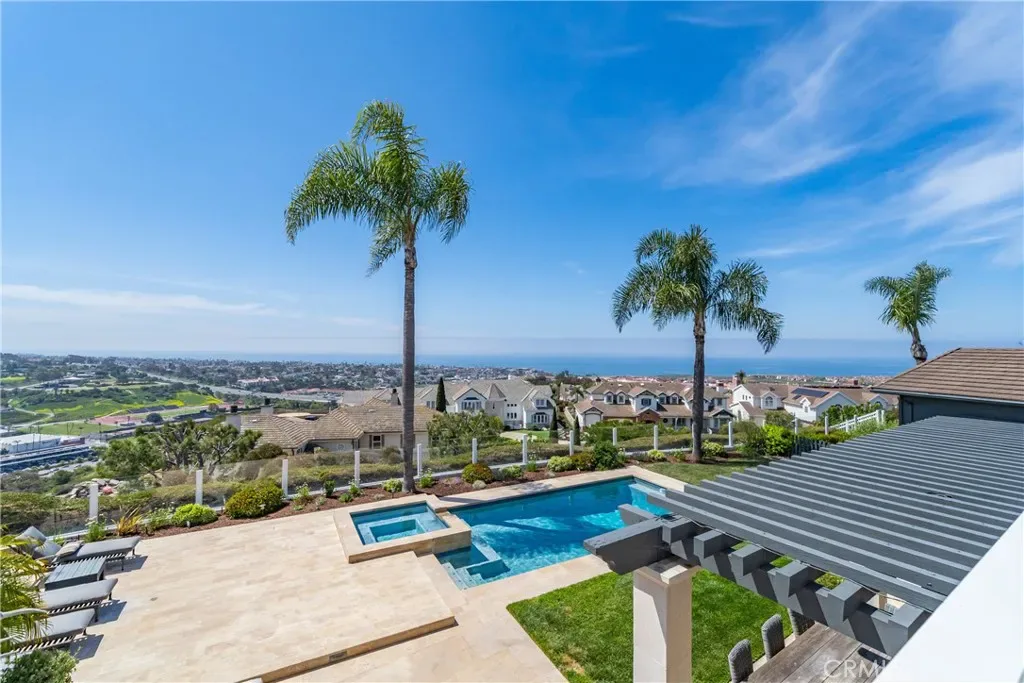 This light filled home is set on a premier San Clemente terrace, with sweeping 180 degree ocean, Catalina Island, and city light views in a refined coastal setting. This private enclave is a thoughtfully designed 4409 sq ft estate, featuring 5+ bedrooms and 6 bathrooms. A Dakota stone pathway leads past Cypress and a majestic olive tree, setting the tone of timeless European influences with quintessential Southern California style. Inside, a voluminous entryway with limestone and custom ironwork handrail, leads to vaulted ceilings, carved stone fireplaces, and generous living spaces with seamless indoor outdoor flow. The sunny attached casita, with ADU possibilities, has a private entrance, full bath, and temperature controlled wine room that is ideal for guests, creative use, wine pairing, or a wellness studio. The panoramic ocean views are on full display from most every room.
