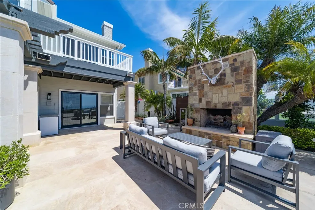 Outside, enjoy an expansive French limestone patio with French limestone columns under a huge shade trellis. Towering palms frame the solar heated French blue pool with waterfall spa and the custom Dakota stone and limestone finished fireplace. A sleek glass back fence offers unobstructed views. The teak outdoor shower adds a luxurious resort touch.