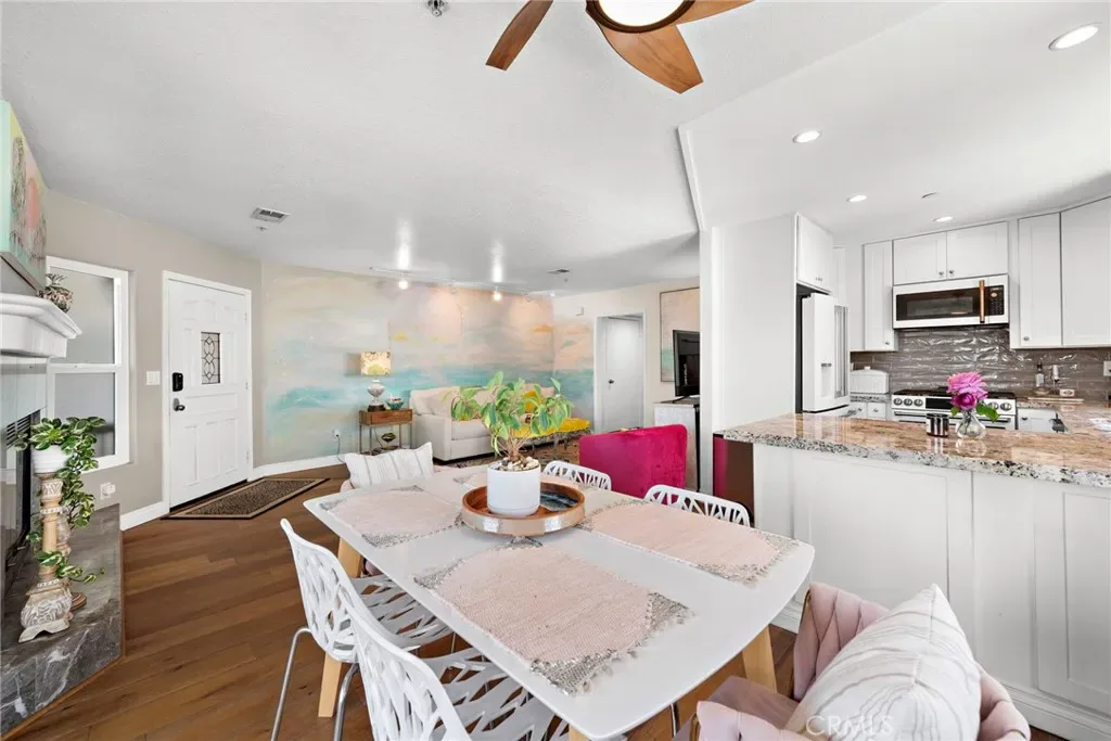 Just a short walk to the beach! Discover coastal living in this spacious 3-bedroom, 2-bath condo on the Montalvo Loop in South San Clemente. The extremely open and airy layout features laminate flooring throughout, a family room with a fireplace, and an updated kitchen with granite countertops and upgraded appliances. Large windows and a canyon view enhance the bright, inviting interior. Enjoy canyon and an ocean-views from the semi private deck. Additional conveniences include inside laundry, mirrored closet doors, and underground parking with additional storage.