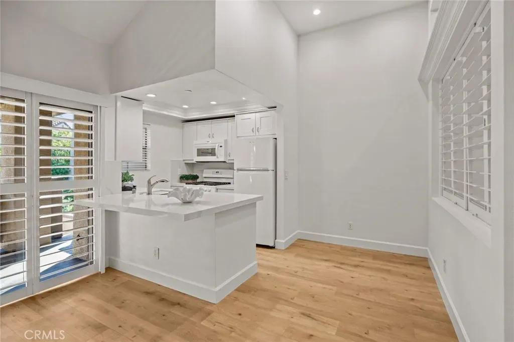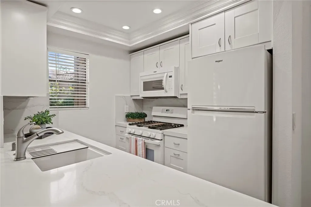 Situated in the hills of Rancho San Clemente this upper level 1-bedroom, 1-bath condo has been renovated. Enjoy serene views of a peaceful stream and pond with mature tropical landscaping The kitchen has been renovated with white cabinets, Quartz counters and newer appliances (Refrigerator included). All rooms offer high ceilings and recessed lighting. The bedroom is open and features an over sized closet, along with a ceiling fan and en suite bath. The bathroom is renovated with a new vanity and features a stackable washer and dryer. Light Oak like LVT flooring throughout. Within a short distance is an oversized one car garage and plenty of open parking is located throughout the complex. Association amenities include a large pool and spa, trash, RV parking. This property is within minutes to the beaches, freeway, shopping and dining. Experience the best of San Clemente coastal living!