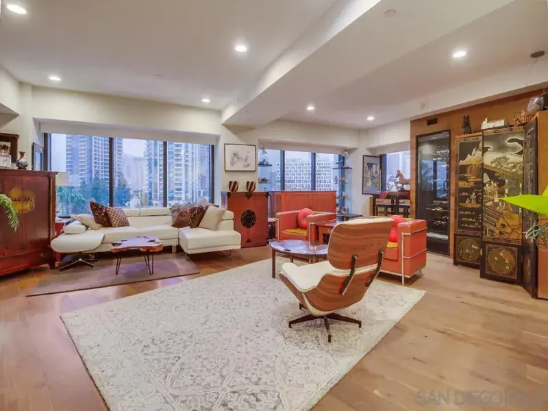 Luxury Living with spectacular San Diego Bay and city views at the iconic Harbor Club! This unique condo was tastefully remodeled and customized with no expense is spared. Walls of windows surround this fabulous home, all equipped with motorized roller shades for simple transition throughout your day. Custom built-in wine cellar in the open living room. Assigned corner parking in the garage with private Chargepoint EV charging station recently installed for $20K+. Only two units on this floor for ultimate privacy; a rare find in any major full service building. On the same floor for much desired convenience, there is a gorgeous lap pool, hot tub, extensive modern fitness center, beautiful community room with kitchen for entertaining, outdoor dining spaces with heaters, and a fire pit surrounded by cozy seating. These resort like amenities are located on the sixth floor up from the busy streets, creating an oasis away from the hustle and bustle of the city. The Harbor Club is located in the heart of downtown San Diego near the Gaslamp Quarter, restaurants galore, the Convention Center, near Petco Park, Seaport Village, minutes to Balboa Park and easy access to the airport.