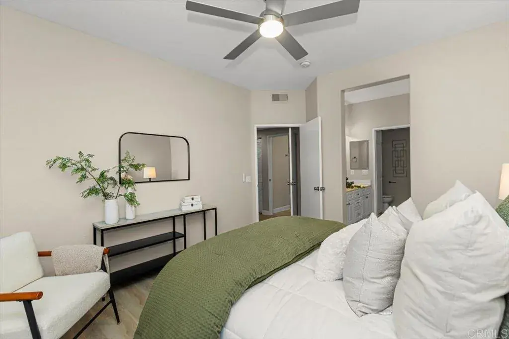 Welcome to this beautifully updated corner-unit condo in the highly desirable Sabre Springs Palo Alto community. This light and bright 2-bedroom, 2-bathroom home offers comfort and convenience with thoughtful upgrades throughout. Enjoy a cozy fireplace, brand-new luxury vinyl plank flooring, fresh interior paint, and a new A/C unit for year-round comfort. The open layout is ideal for both relaxing and entertaining. The unit includes one assigned parking space and access to fantastic community amenities, including a sparkling swimming pool, spa, and fully equipped fitness center. Water, Sewer and trash are included with the hoa fees. Ideally located near shopping, dining, and easy freeway access, this move-in-ready home is a must-see. Located in the award winning Poway School District. Seller to select services. Parking space #209. Room dimensions & square footage are approximate, per builder & assessor`s record.