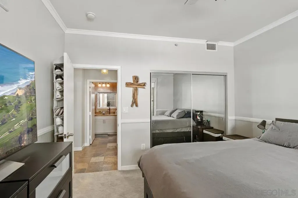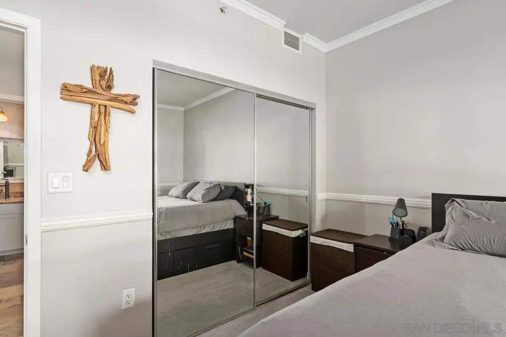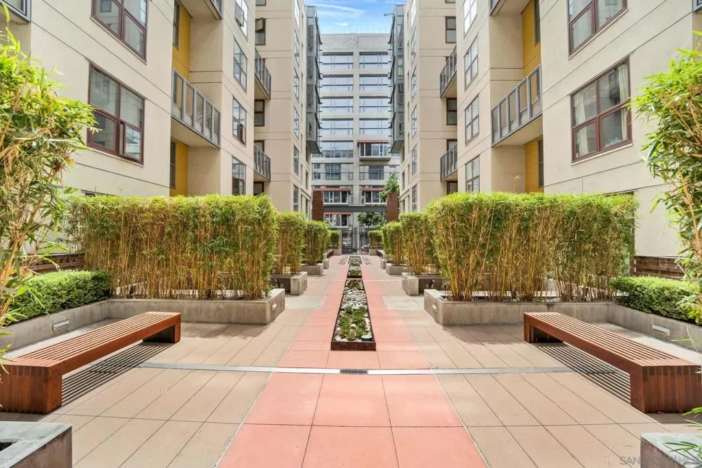 Welcome to The Metrome downtown city living with exceptional blend of modern design and convenient amenities. Whether you’re searching for a smart investment or the perfect place to call home beautifully appointed space. With a desirable southern exposure. Bright living space to include built-in window bench, bookshelves by the large window facing J street with newer window shade treatments and crown moldings. The chef’s kitchen is a culinary dream, featuring a breakfast bar, and an array of stainless steel and Energy Star appliances. The open kitchen design flows seamlessly into the living area, perfect for entertaining or enjoying a cozy night in. Retreat to the bathroom, where you’ll find a luxurious double sink, granite accents, and a soaking tub, providing a spa-like experience. Step outside to enjoy the beautifully landscaped common courtyard, garden, perfect for relaxation and social gatherings. The building boasts a range of amenities, including a club house, fitness center, recently renovated resident’s lounge, and a common media/recreation room plus a Zen garden! For your peace of mind, the property features an intercom system, security gate, and security patrol.Parking is a breeze with underground gated and TWO assigned parking spaces in the covered garage with storage area, and bike storage. Central heating a/c ensure year-round comfort, while the laundry is in the unit for added convenience. Excellent urban living superbly located two blocks from Petco Park, restaurants, coffee houses, boutiques, and more. An easy walk to the embarcadero and seaport village to attend Symphony events at the new Rady Shell, and a lot more downtown festivities. LOW HOA Don’t miss the opportunity to own this incredible condo in one of San Diego’s most coveted locations. Beautifully landscaped common courtyard, garden, perfect for relaxation and social gatherings. The building boasts a range of amenities,including a club house, fitness center, recently renovated resident’s lounge, and a common media/recreation room plus a Zen garden! For your peace of mind, the property features an intercom system, security gate, and security patrol.