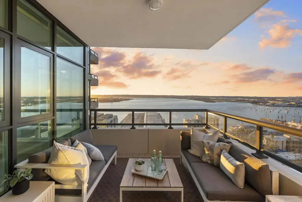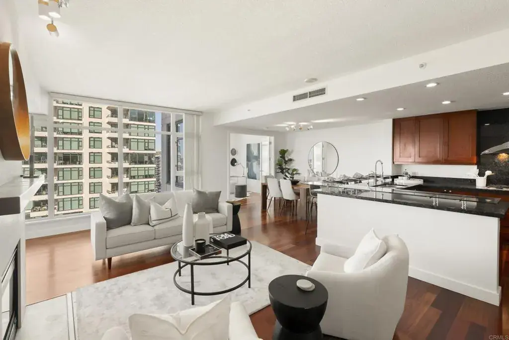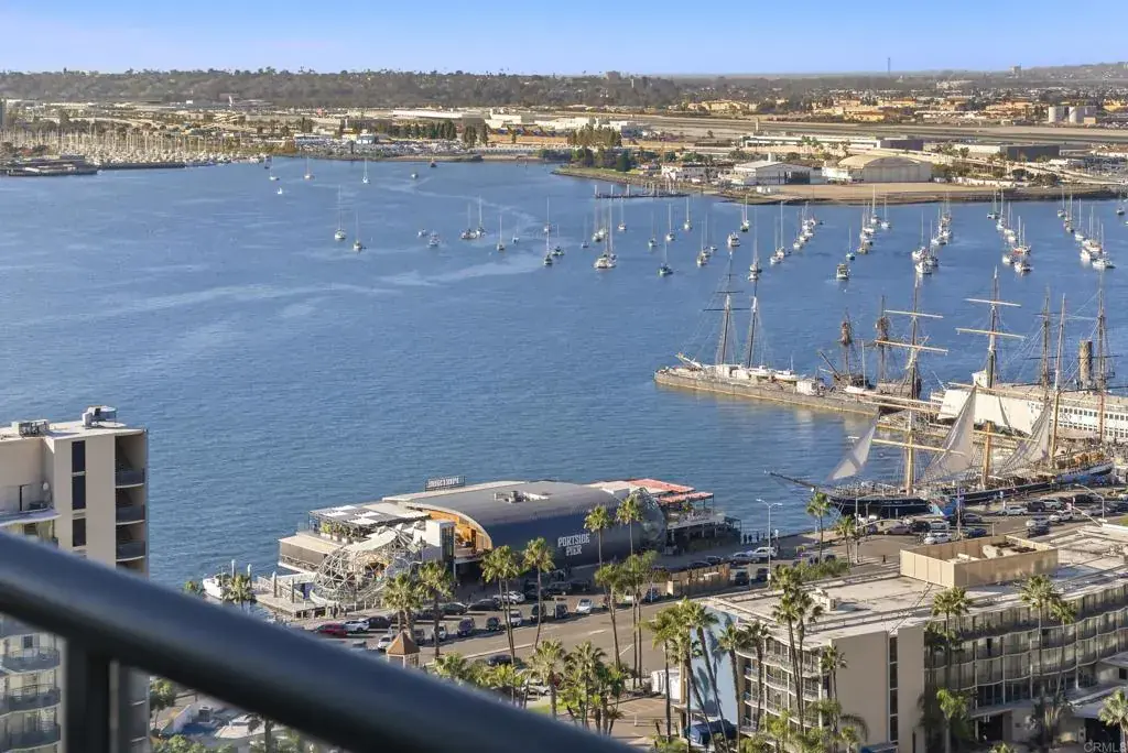 Elevate your lifestyle in this breathtaking 25th-floor condo in the heart of San Diego’s prestigious Marina District where urban sophistication meets stunning bay views. The open-concept layout seamlessly connects the Living area to a stylish Kitchen & Dining area perfect for entertaining or enjoying quiet evenings at home. Featuring 2 bedrooms with views, this unit includes a versatile office space, ideal for remote work or creative pursuits. Enjoy floor-to-ceiling windows that flood the space with natural light. Step out onto your private balcony to soak in the vibrant city skyline and serene bay & sunset views. With access to top-notch building amenities, including a fitness center, pool, and communal lounges, this condo offers a lifestyle of luxury and convenience. This chic condo is designed for those who appreciate the finer things in life, offering a perfect blend of comfort and style. Experience the best of San Diego living.