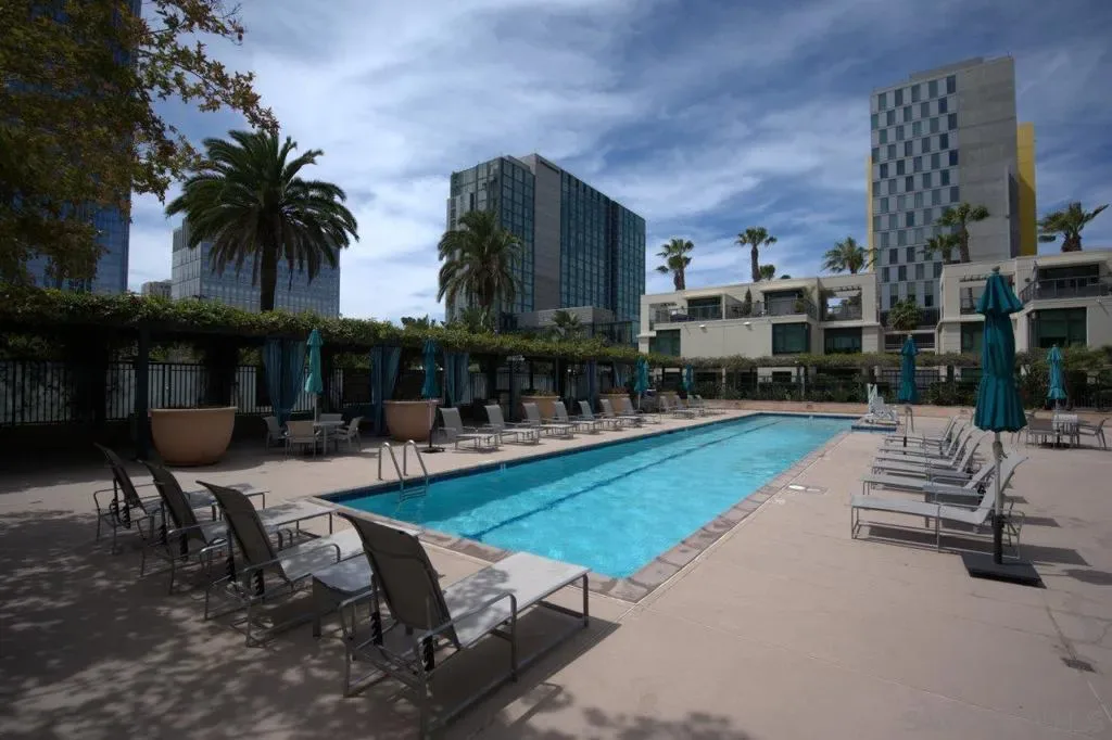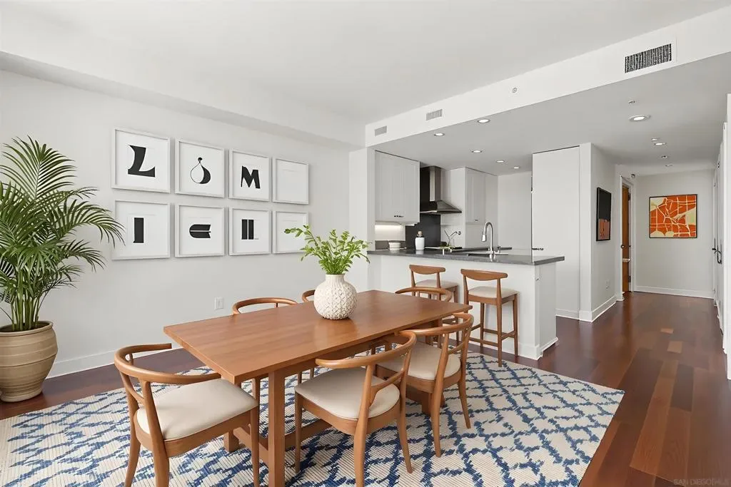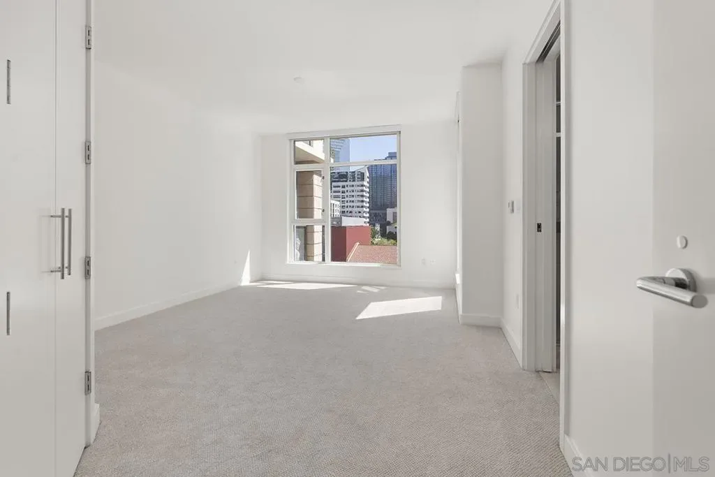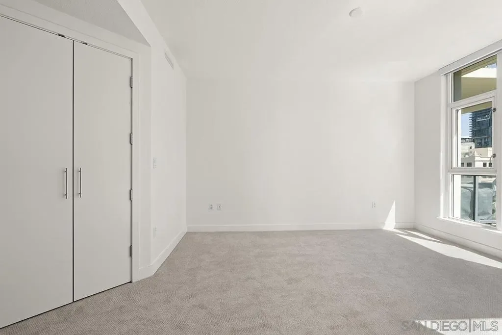 Come see what luxury living all is about at the Grande South! Polished & pristine, this gorgeous condo is highlighted by walls of windows bringing in great natural light while enjoying the beautiful cityscape and bay views from this lightly lived in southeast corner residence. This 7th floor unit features rich engineered wood floors, an ambient fireplace, and an expansive private balcony overlooking the ever-changing city and bustling Embarcadero. The chef’s kitchen boasts premium stainless appliances, recessed lighting, and gleaming granite surfaces plus a breakfast bar. The open living/dining area is perfect for entertaining with a tranquil backdrop to enliven the experience! The spacious primary suite offers sunrise mornings, walk-in closet, ensuite bathroom with frameless shower and dual vanity. Plus, newer upgraded LG ThinQ stackable washer and of storage throughout. Embrace sophisticated urban living on Millionaire’s Row! The Grande offers top-notch resort-style amenities including a newer updated and upgraded fitness center, sauna & steam room, 80-foot outdoor pool, barbecue area, club room, fully furnished meeting room, guest suite, and bicycle storage. Located across from the Embarcadero, you are sure to enjoy the prime location walkable to the waterfront, Little Italy, and Rady’s Shell at Jacobs Park, a unique live music venue and home of the San Diego Symphony! Also enjoy proximity to the future life science and biotechnology research development The Research and Development District (The RaDD) at the Embarcadero and the sustainable tech-focused Horton Plaza Redevelopment in the center of the city. Some photos are virtually staged. Builder indicated 1336sqft, assessor’s record states 1227sqft.