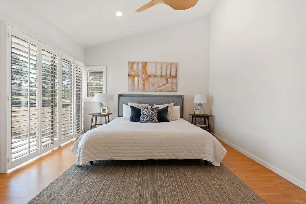 Welcome to your dream home at 12152 Royal Birkdale Row, Unit B, nestled in the gated community of Master Hill and perfectly situated on the 1st hole of the golf course. This exceptional 5-bedroom, 3-bathroom residence spans 1,939 square feet of elegance and offers breathtaking golf course and mountain views from the backyard. Thoughtfully designed for comfort and style, the home features two bedrooms on the main floor and three upstairs. Enjoy luxurious living with hardwood floors, two cozy fireplaces, and a kitchen that’s been beautifully updated with new flooring, quartz countertops, and stunning cabinets. Shutters add a touch of elegance throughout. Plus, an attached garage and in-unit washer/dryer make everyday living a breeze. The HOA provides Spectrum high-speed internet/cable, water, trash, and maintenance of the roof, stucco, and wood. In addition, enjoy access to three pools and three spas, and take advantage of the membership at The Community Association at Bernardo Heights, featuring a junior Olympic swimming pool, tennis and pickleball courts, a grill area, and a clubhouse with a weight room, meeting room & game room. This home perfectly blends luxury and leisure, making it an ideal sanctuary for you and your loved ones. Welcome home!