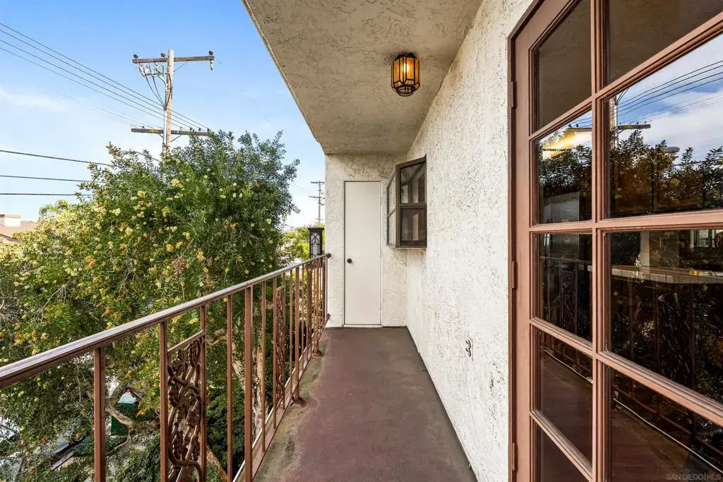 Units in this building rarely come on the market so this one is not to be missed. Located just 10 minutes from San Diego International Airport, less than 10 minutes to downtown, and walking distance to restaurants, grocery stores, shopping hubs, nightlife, Balboa Park and the San Diego Zoo, this unit is located in one of the most central locations in the city. With 2 bedrooms and 2 bathrooms, this corner unit condo is full of natural light from both the north and east sides. You’ll find French doors that open up from the dining room and primary bedroom leading to two separate balconies, and another set of French doors in the second bedroom with a juliet balcony facing east. The main living area is spacious and open with plenty of room for a living/TV room and possible work from home space. With in-unit laundry, two gated parking spaces (not tandem) and a storage locker, this is one of the most desirable communities in Hillcrest.