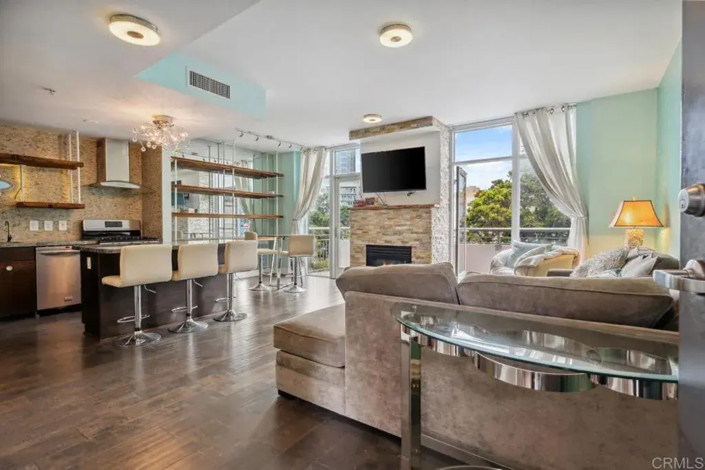 $500 off first month’s rent with a one year lease. Experience urban sophistication in this spacious, partially furnished 2-bedroom, 2.5-bathroom condo at Treo, located at 1277 Kettner Blvd, Unit 300 in the heart of downtown San Diego. With 1,265 square feet of living space, this rare two-story layout offers excellent separation between living and sleeping areas—an uncommon feature in downtown residences. The modern kitchen is outfitted with stainless steel appliances, and the unit includes in-unit laundry, central heating and air conditioning, and city views for year-round comfort and style. A convenient half bath is located on the lower level, ideal for guests. This home offers dual street access, with two staircases located just outside the front door—providing quick entry to A Street and easy access to the Kettner lobby and Kettner Boulevard. It’s also situated on the beautifully landscaped garden-level courtyard, offering immediate access to the pool, fitness center, and other amenities. The combination of street-level convenience and resort-style features is truly unique in downtown living. One assigned garage parking space is also included, adding to the convenience of this urban retreat. Residents of Treo enjoy access to a range of upscale amenities, including a heated lap pool, spa, fitness center, BBQ areas, and a clubhouse. This home combines contemporary comfort with vibrant city living, making it a standout choice for those seeking convenience, style, and downtown energy.