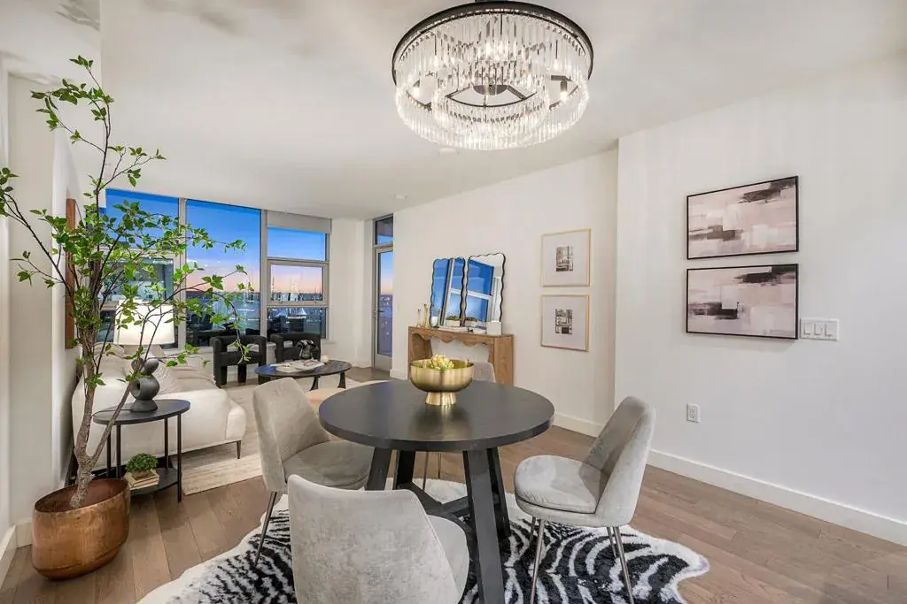 Welcome to Savina – Downtown’s premier luxury high-rise living next to Little Italy and the Bay! This stunning west-facing 2BR/2BA residence sits on the 6th floor, with sweeping bay and city views from every room. The open-concept kitchen features white quartz countertops, Thermador appliances, a spacious island, and ample storage, perfect for both everyday living and entertaining. The primary suite offers a generous walk-in closet, with a spacious 2nd bedroom with bay views. Enjoy sunsets and sparkling city lights from your private balcony. 1 Reserved Parking Spot + 1 Private Storage Room. Hardwood floors throughout kitchen and living room and brand new high end carpets in bedrooms. Residents of Savina enjoy resort-style amenities, including a pool & spa, state-of-the-art fitness center with yoga deck, steam & sauna rooms, a resident lounge, outdoor BBQs, pet retreat, conference room, and 24-hour concierge service.