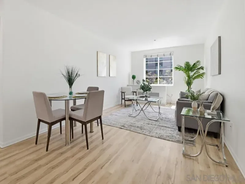 Own the Heart of Little Italy for Less Than Rent! VA-approved! This is the one you’ve been waiting for! Portico 406 puts you in the center of San Diego’s most coveted walkable neighborhood — steps from the bay, world-class restaurants, the Saturday Farmers Market, Waterfront Park, and both Balboa and Petco Parks — at a price point where owning pencils out better than renting. Freshly-staged and photographed, this sun-drenched 1 bed/1 bath lives larger than you’d expect. Natural light pours through the windows throughout the day, and the flexible layout creates an effortless home office setup — a rare commodity in downtown San Diego! The building features secured entry, gated underground parking, in-unit laundry, and central HVAC. Low HOA dues keep monthly costs lean. And here’s what sets this apart: Portico’s VA-approved. For eligible veterans and active-duty buyers, this is an extraordinary opportunity to purchase in one of San Diego’s most desirable neighborhoods with zero down — in a market where that almost never happens at this price! At $469,900, your all-in monthly cost of ownership is comparable to what you’d pay to rent in Little Italy. Except you’re building equity in America’s Finest City. Opportunities like this don’t last!