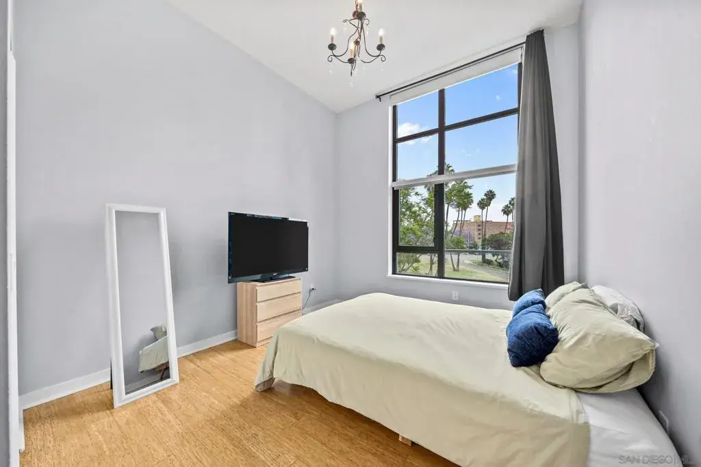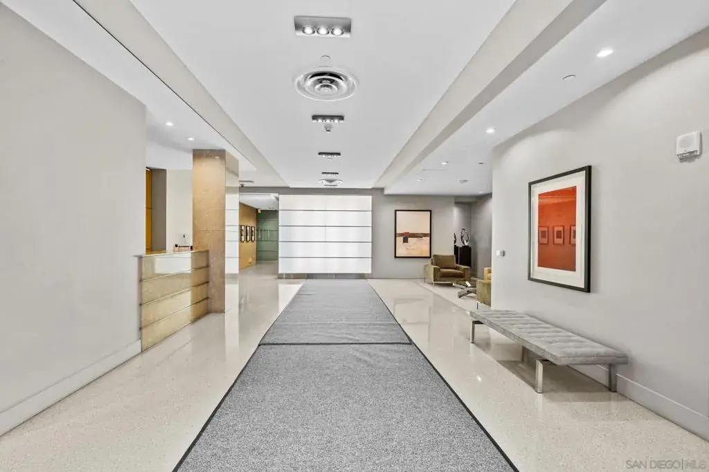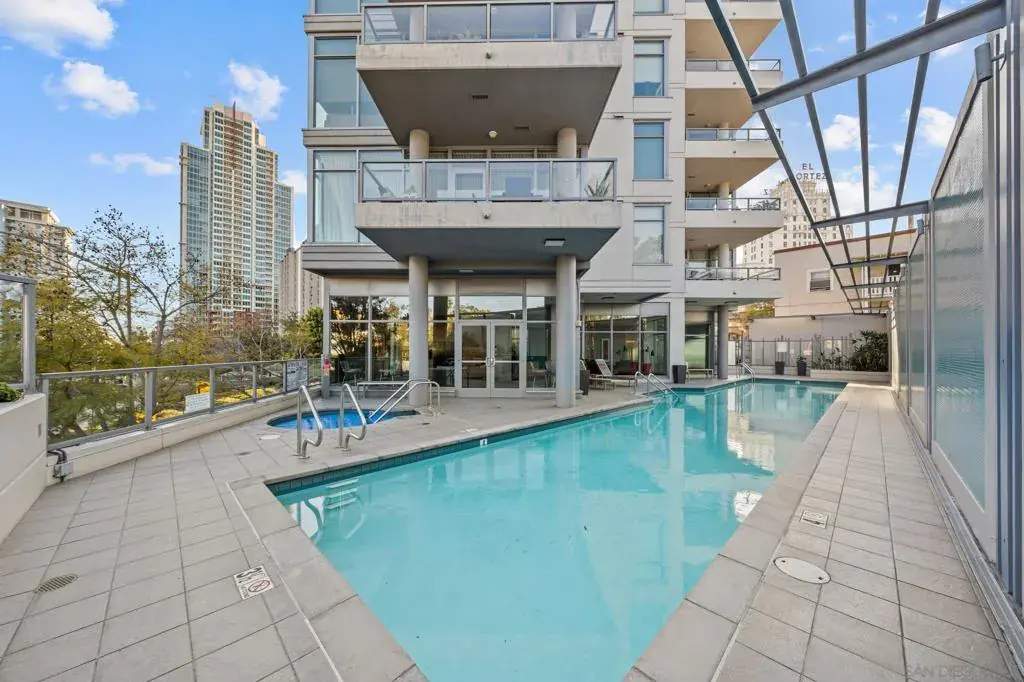 Spacious ground-floor residence features 2 bedrooms plus a den, 2 bathrooms, and breathtaking vaulted ceilings with floor-to-ceiling windows. Encompassing 1,261 sq ft, this home offers exclusive access to luxurious amenities, including a serene pool, rejuvenating jacuzzi, and state-of-the-art gym. With an exceptional walkability score, immerse yourself in the vibrant dining, shopping, and cultural experiences of downtown San Diego. Discover the perfect harmony of refinement and urban lifestyle.