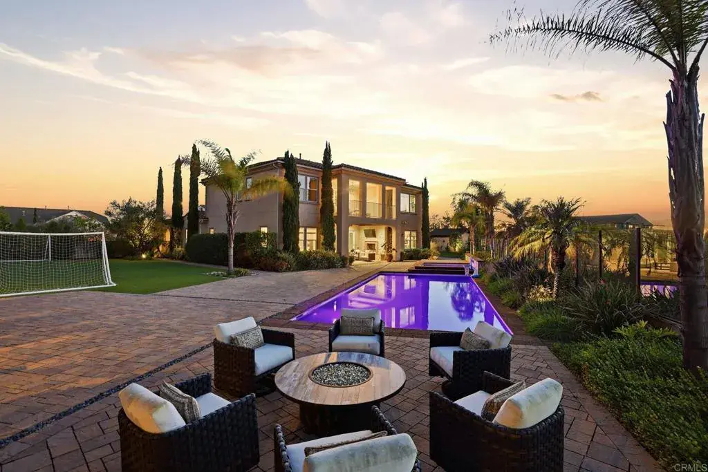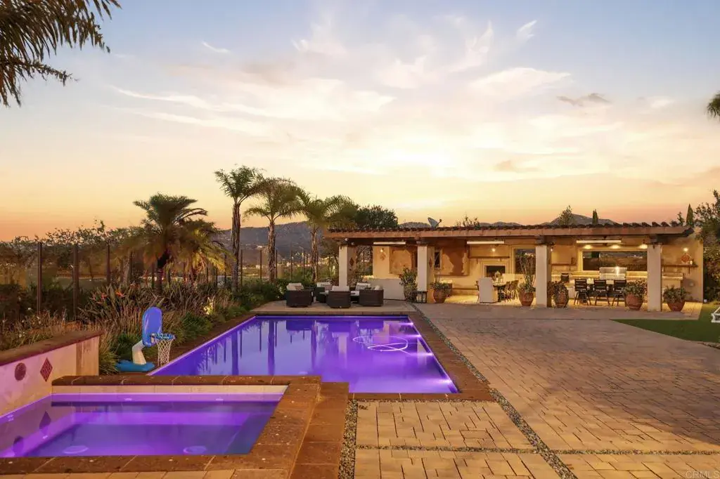 Welcome to 15252 Via Santa Vienta, an exceptional 5-bedroom, 5.5-bath residence nestled in the highly coveted Stonebridge Estates. Set on a one-of-a-kind private lot near the end of a cul-de-sac, this home offers rare serenity with unobstructed sunset views and unparalleled privacy – all within the very desirable Poway Unified School District. Beautifully upgraded throughout, this property blends everyday comfort with elevated, timeless design. Step inside to find new hardwood and tile flooring, custom window coverings, upgraded LED lighting, and refreshed bathrooms and kitchen featuring a large Sub-Zero refrigerator, dual Wolf ovens, and an elegant designer backsplash. Hand-crafted ceiling beams add warmth and architectural character to the living room, dining room, and California room. The expansive primary suite offers upgraded hardwood floors and a serene private sitting room, creating a true retreat. A dedicated home office with double-paned glass doors provides functionality and quiet workspace. Additional interior enhancements include upgraded carpet in all bedrooms, a large wine cabinet/cellar, built-ins throughout, a barn door in the playroom (with potential to function as an additional bedroom), and a large stunning game room finished with brick and custom woodwork. Modern conveniences elevate daily living: a fully owned 49-panel solar system, new on-demand water heaters, whole-home water softening, EV charging on both sides of the oversized garage, custom garage flooring and cabinetry, an indoor/outdoor high-end sound system, artificial turf field, and exterior security cameras. The backyard is a true large private oasis, offering sweeping sunset views, redesigned landscaping, multi-zone irrigation, raised beds vegetable garden, numerous fruit trees, expanded stonework, and an outdoor kitchen island—perfect for entertaining. The motorized pool cover adds ease and safety. The detached pool house, complete with a full bath, has been transformed into a yoga and wellness studio with mirrors and a dance floor, creating a personal retreat just steps from the main home. Located in one of Scripps Ranch’s most desirable neighborhoods, this turnkey residence offers luxurious living, exceptional privacy, and an unparalleled sense of space and tranquility.