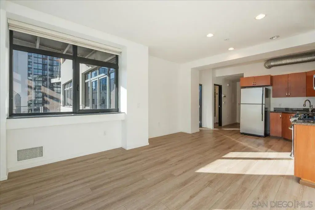 BEST DEAL IN SOLARA LOFTS – RARE 2 BALCONIES + 2 SIDE-BY-SIDE PARKING SPACES! Urban living at its finest in this stylish south-facing 1-bedroom loft condo featuring two private balconies—an extremely rare find in the community. The open layout includes upgraded flooring, stainless steel appliances, in-unit laundry, and a generously sized bedroom and bathroom. Added convenience includes two side-by-side parking spaces and a private 3′ x 10′ secured storage room. Solara Lofts offers fantastic amenities including a fitness center, male/female locker rooms, a beautiful lobby, elevators, visitor parking, and secure gated building access. Prime location—just minutes from Little Italy and the Gaslamp Quarter, with excellent I-5 freeway access only one block away. Don’t miss this unbeatable value in one of Downtown San Diego’s most convenient and walkable neighborhoods!