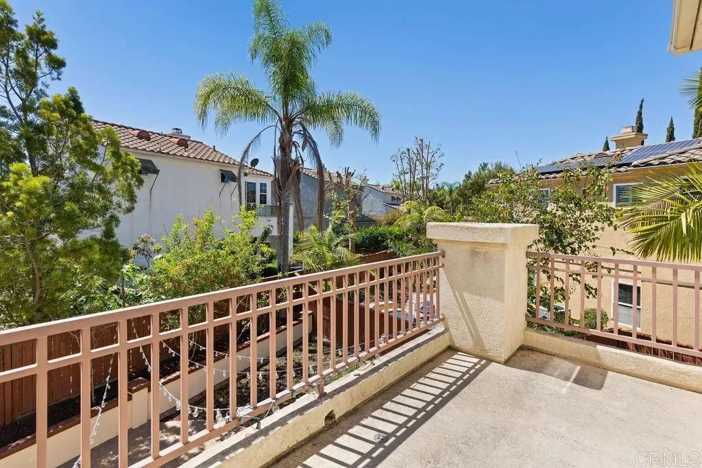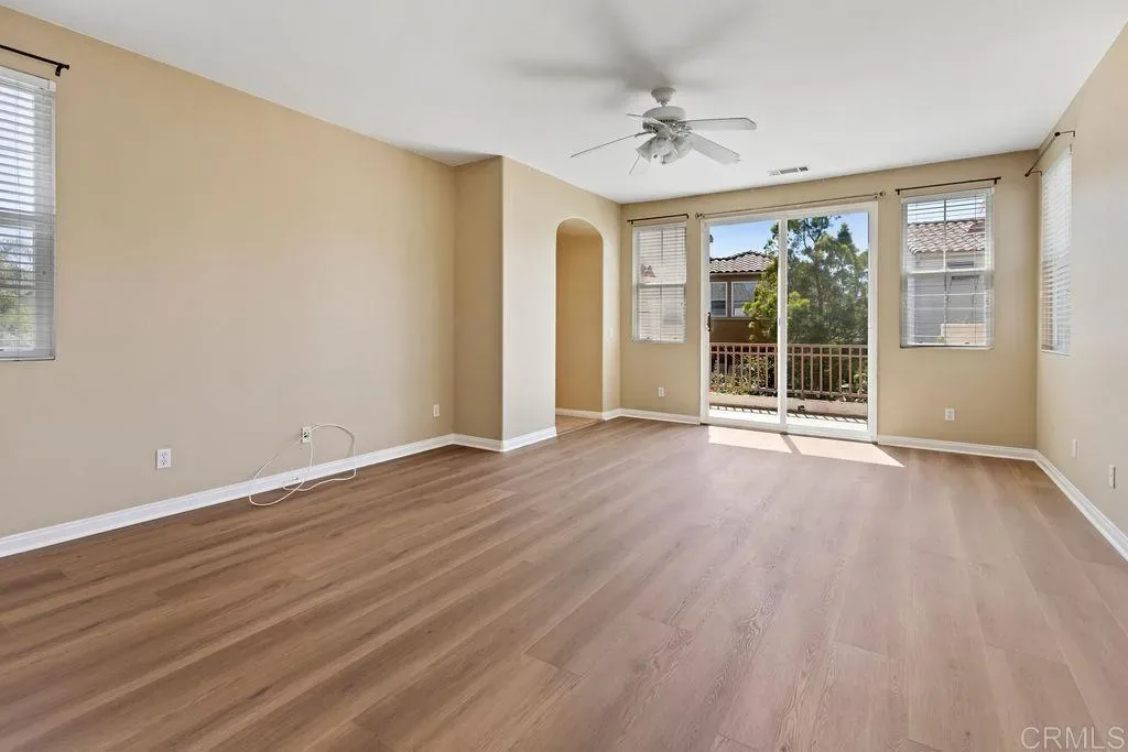 Spacious 3-bedroom + den home in the highly sought-after 4S Ranch community! Tucked away on a private cul-de-sac and positioned on a corner lot, this home offers an exceptional blend of privacy in an ideal location. Step inside to soaring 18 foot ceilings and an abundance of natural light that welcome you into the front living room. The versatile floor plan features two separate living areas downstairs, along with a dedicated den—ideal for a home office, study space, or playroom. The kitchen is designed for both function and connection, opening to the second living room for open-concept living. Highlights include a gas cooktop, double ovens, ample cabinetry, a pantry, and a bright window over the sink. The adjoining family room features a cozy gas fireplace and direct access to the backyard.Enjoy indoor-outdoor living in the private backyard complete with a covered patio, pavers, and space for gardening or entertaining. Upstairs, you’ll find generously sized bedrooms, abundant storage, and a dedicated laundry room with washer and dryer included. Brand new vinyl wood flooring adds a fresh, modern touch throughout the upper level. The expansive primary suite offers a peaceful retreat with a private balcony, oversized walk-in closet, spa- like bathroom, and plenty of room to unwind. Additional highlights include an EV charging outlet in the garage—perfect for modern living and convenience. Garage also comes equipped with built in cabinetry for organization and storage. Ideally located within walking distance to 4S Heritage Park and 4S Commons, offering shopping, dining, and everyday conveniences. Situated in the award-winning Poway Unified School District, including Stone Ranch Elementary, Oak Valley Middle, and Del Norte High School.A great opportunity to enjoy space, privacy, and walkability in one of North County’s most desirable neighborhoods.