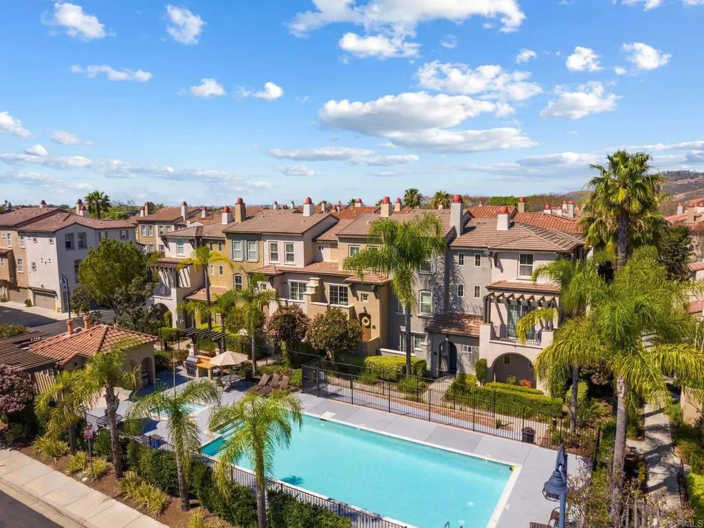 This beautiful home is located in the highly sought after San Moritz community of 4S Ranch which is one of North County’s most desirable neighborhoods. With views overlooking the sparkling pool and courtyard, the setting feels both private and connected. The entry level features a bedroom and full bath—ideal for guests, a home office, or multigenerational living. Upstairs, the main living area is bright and open, with a fireplace warmed living room that flows seamlessly into the dining area and large kitchen complete with a center island that has breakfast bar seating, stainless steel appliances, ample cabinetry and large pantry. A private balcony extends the living space and creates a natural indoor-outdoor flow. The top floor is anchored by the spacious primary suite, offering an oversized walk-in closet, dual sinks, large windows that bring in natural light, and a versatile alcove perfect for a nursery, office, or additional retreat space. Living in 4S Ranch means more than just a home – it’s a lifestyle. Residents enjoy access to top-rated Poway Unified schools, multiple parks, approximately 10 miles of scenic trails, and about 1,600 acres of thoughtfully designed open spaces designated as a wildlife habitat. The nearby 4S Commons Town Center offers convenient shopping, dining, and everyday essentials, while community amenities like the Splash Pad at Pioneer Park, sports fields, the public library, Boys and Girls Club and neighborhood events make this a truly vibrant place to call home.