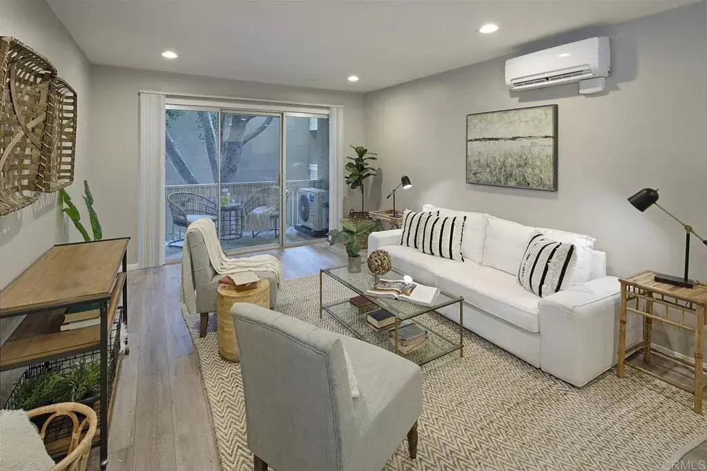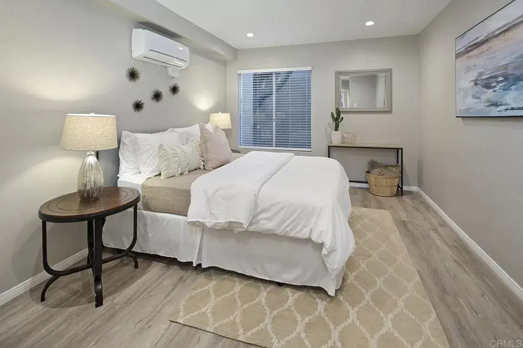 Newly Priced in PB corner unit condo with no shared walls and beautifully updated! Ideally positioned just blocks from the sand, this gorgeous condo offers a turnkey opportunity to enjoy the best of Pacific Beach living with a seller negotiation option for a swift close. Fully renovated in 2019, this stylish home blends modern upgrades with a serene, private setting rarely found so close to the coast. The thoughtfully redesigned interior features a bright, contemporary aesthetic with updated plumbing, electrical, A/C, lighting, drywall ceilings, and refined finishes throughout. The kitchen is a true focal point, appointed with solid wood cabinetry, white quartz countertops, an oversized deep sink, and stainless steel appliances. The bathroom mirrors this level of quality with dual vanities, mosaic-tiled shower walls, and sleek modern fixtures. Wood flooring, new doors and closets, and recessed lighting complete the polished look. This first-floor corner unit enjoys exceptional privacy with no shared walls and a quiet interior location away from street noise. Step onto your private patio to take in tranquil lagoon and garden views. This ideal retreat still places you just steps from the lobby, fitness center, package room, library, and pool. A standout feature is the dual-zone mini-split A/C and heating system, offering separate climate control for the living area and bedroom, a rare and highly desirable upgrade within the community! The home also includes a prime reserved garage parking space on the lower level, featuring one of the widest stalls in the complex and accommodating a full-size vehicle. Residents enjoy resort-style amenities including multiple pools and spas, a gym with sauna, tennis courts, a clubhouse, and lush landscaped courtyards. All just minutes to the beach, bays, Garnet Avenue, and Pacific Beach’s iconic dining and nightlife. An unbeatable coastal lifestyle with exceptional walkability and at an incredible new price!