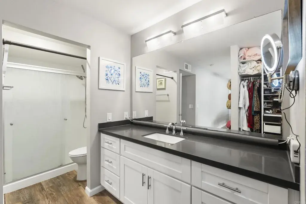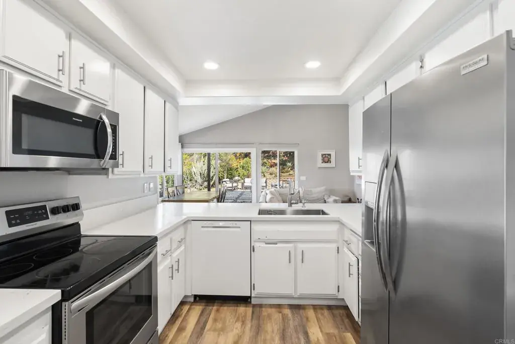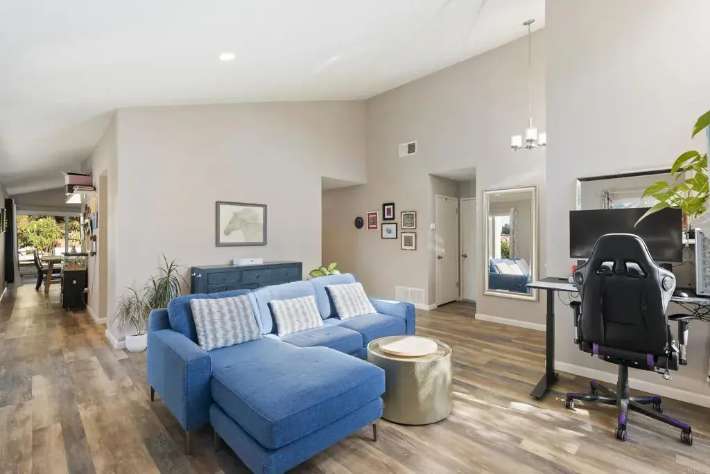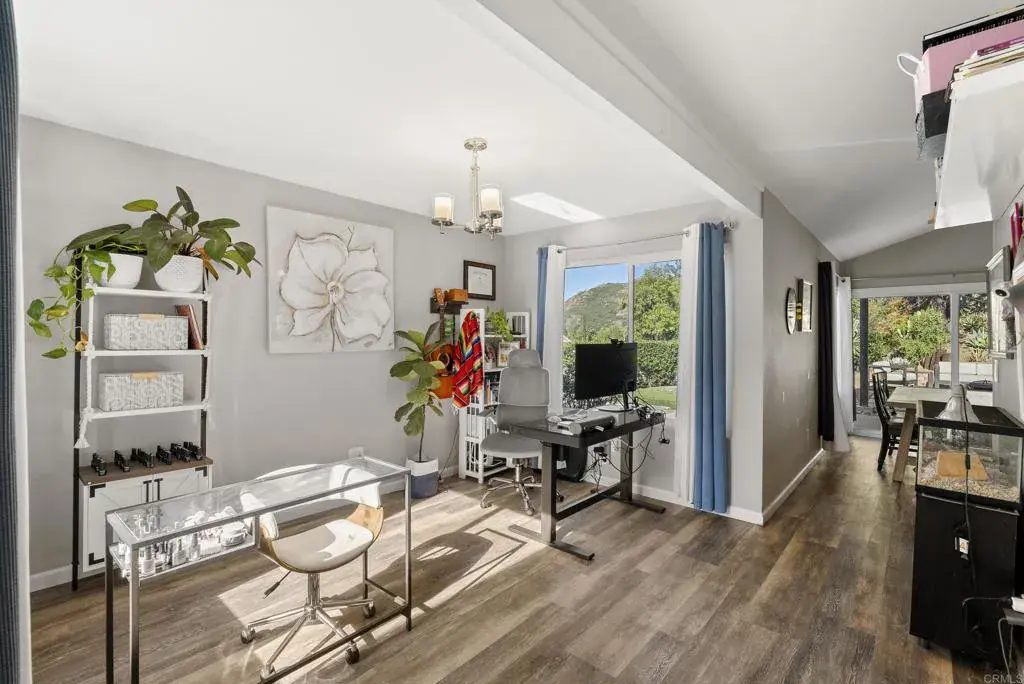 Beautifully Remodeled Single-Story Home in Rancho Bernardo! This move-in-ready 3-bedroom, 2-bath home plus office sits on a spacious 14,000 sq. ft. lot and offers a smart open-concept layout with excellent privacy. The bright interior features high ceilings, luxury vinyl plank flooring, and abundant natural light. Highlights include 16 fully paid solar panels with NEM 2.0 (lower electric bills), a 4-year-old roof, dual-pane windows, and an EV-friendly setup. The updated kitchen and bathrooms feature quartz countertops and modern finishes. The home offers formal living and dining areas, along with a primary bedroom featuring a walk-in closet. Enjoy a private backyard and patio with sunset views in a quiet, well-maintained neighborhood. HOA amenities include a swimming pool, basketball court, pickleball, gym, and tennis courts. Located in the highly desirable Poway Unified School District.
