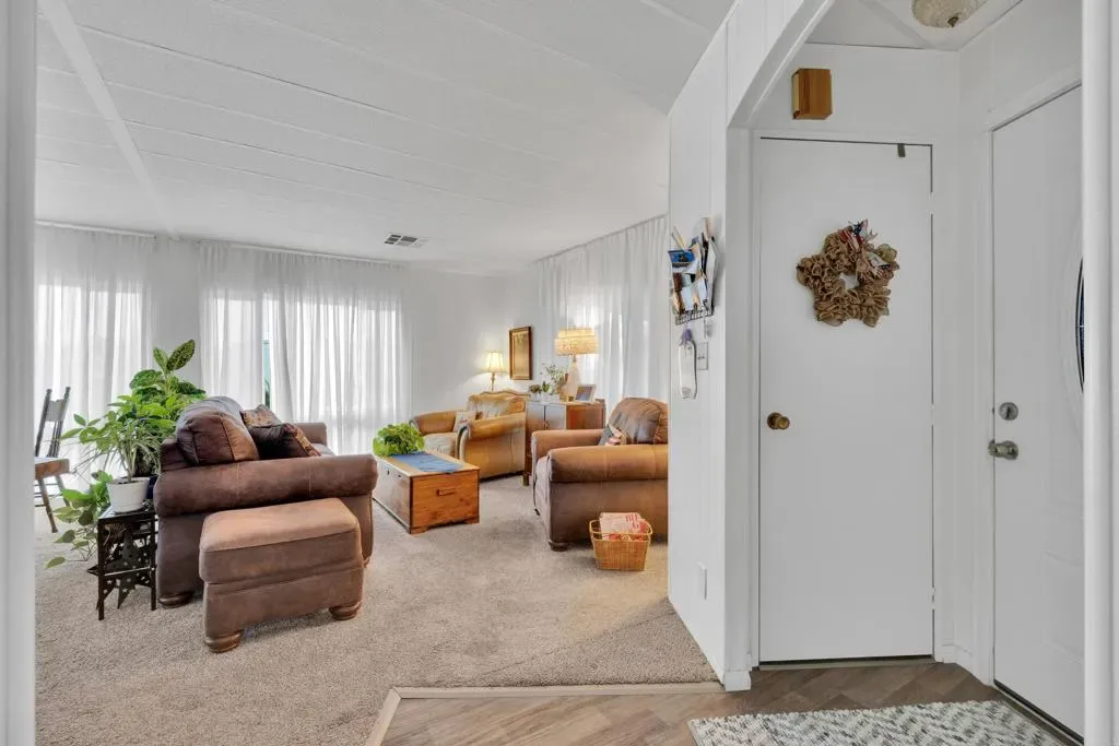 Welcome to Your Serene Escape in Bayview Mobile Home Park! Tucked away in one of San Diego’s most desirable manufactured home communities, this beautifully maintained 2-bedroom, 2-bath home offers comfort, style, and convenience—all on a generously sized lot. Inside, you’ll find two spacious living areas, a flexible office space (previously used as a third bedroom), and a separate dining area with charming built-ins. The thoughtfully designed kitchen includes a gas cooktop, dual ovens, and a casual bar seating area, perfect for relaxed meals or entertaining guests. Refrigerator, washer and dryer included. The primary suite is a private haven featuring an en suite bathroom, while the second bedroom and additional full bath provide ample space for visitors or personal use. Most windows have been upgraded to dual-pane, enhancing natural light and energy efficiency throughout the home. Step outside and enjoy the San Diego lifestyle on two covered porches, ideal for morning coffee, quiet reading, or evening relaxation. A covered carport offers convenience and protection for your vehicle. Located just 15 minutes from everything—including shopping, restaurants, hiking trails, libraries, and beaches—this home is perfectly positioned for easy access to everything you love. Monthly space rent is $1,250. Buyer must be approved by park management. Beautiful clubhouse with pool, hot tub, great meeting space… Whether you’re looking for a peaceful place to downsize, a low-maintenance lifestyle, or a welcoming community to call home—this is it. Come see it today and start your next chapter in Bayview!