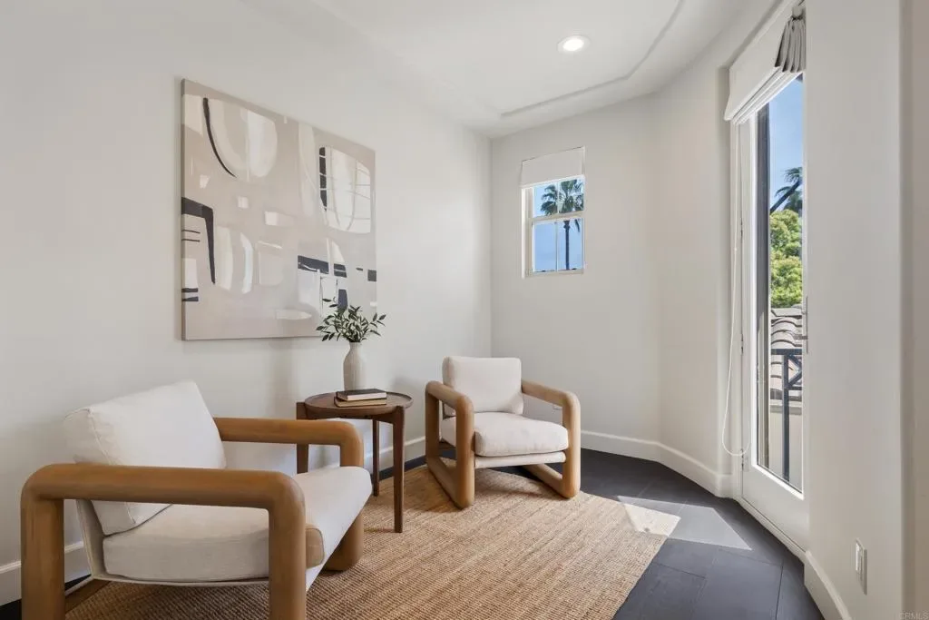 Beautifully remodeled Beacons Point in Liberty Station offers the perfect blend of modern finishes, functional layout, and charming Point Loma living. The open-concept floor plan seamlessly connects the living, dining, and kitchen areas—ideal for entertaining and everyday living. The beautifully renovated kitchen showcases quartz countertops and stainless steel appliances, all complemented by new flooring and designer fixtures, as well as updated bathrooms with contemporary finishes. Upstairs, the primary suite is a true spa-like retreat, complete with a soaking tub, glass-enclosed walk-in shower, dual walk-in closets, and a retreat area with Juliet balcony. A secondary upstairs bedroom and a convenient laundry room add to the home’s thoughtful layout. Downstairs bedroom offers a French door connection to the front patio, creating a unique indoor/outdoor flow for the downstairs living. Outdoor spaces shine with an entertainer’s courtyard featuring Trex decking and a gas fire pit, while the expanded front patio offers additional room to relax and enjoy the charm of Beacons Point. Additional features include a tankless water heater, and a 2-car garage with epoxy flooring and overhead storage racks. Ideally located in the heart of Liberty Station, just moments from parks, waterfront paths, top dining, shopping, Trader Joe’s, and Vons—this home captures the very best of Point Loma living.