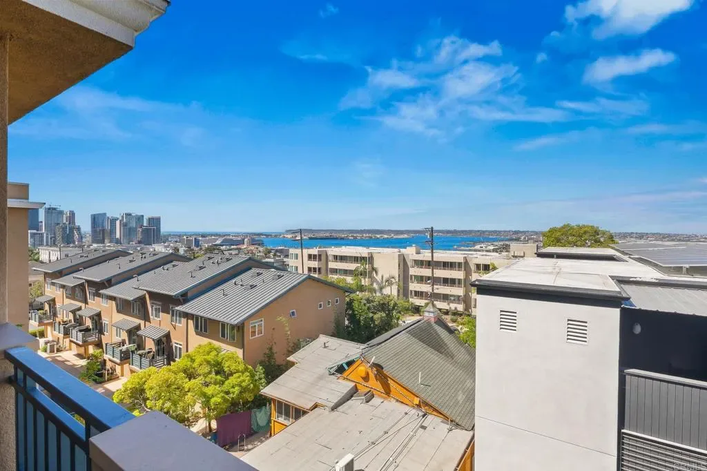 One for the money & two for the show! Top-floor, west-facing condo in south Bankers Hill offers amazingly big panoramic views for under $1 million. The pretty blue waters of San Diego Bay and the Pacific Ocean set the stage, and this condo captures the dynamic atmosphere of San Diego’s waterfront. The 2 bdrm, 2 bath, end-unit condo has a split bdrm floorplan, with 2 west-facing balconies. There are 2 gated parking spaces (tandem). New flooring & paint; dual-pane windows. Located across the street from the iconic Hob Nob Hill restaurant, and easy walking to Balboa Park & museums, eateries, and coffee houses of Bankers Hill. Close to downtown, Little Italy, SAN airport, beaches & freeway.