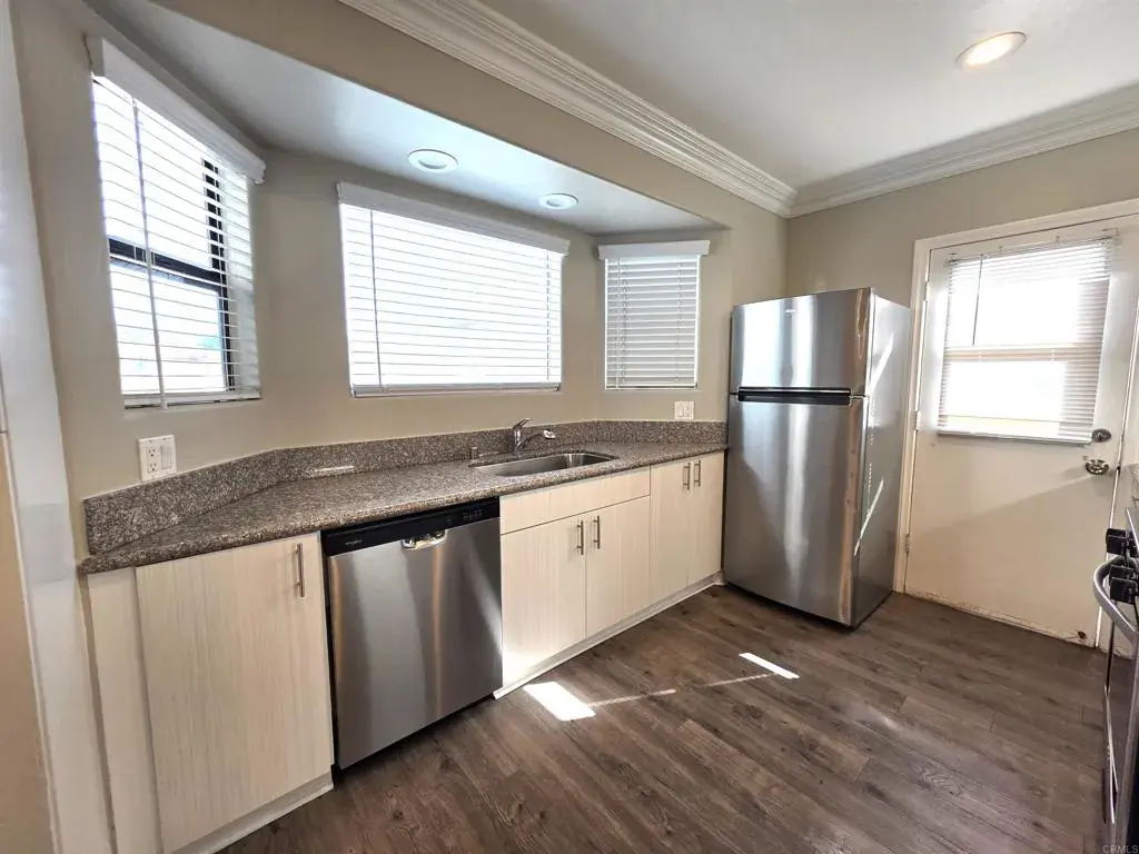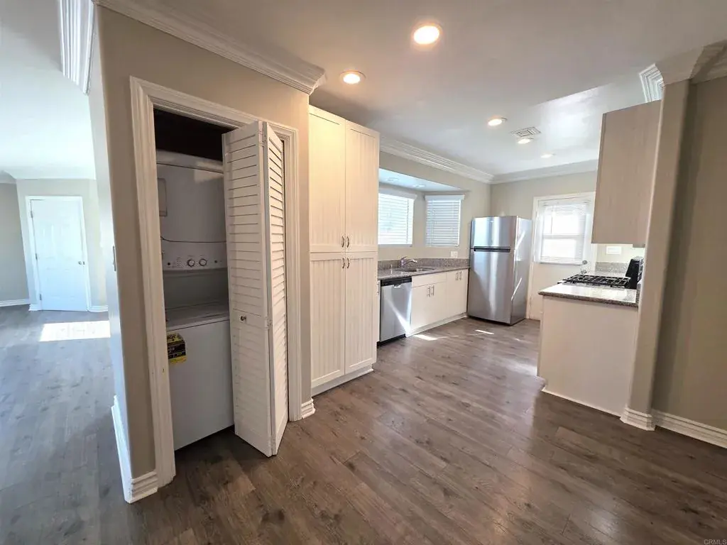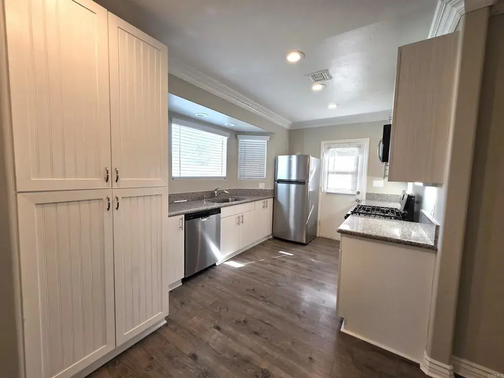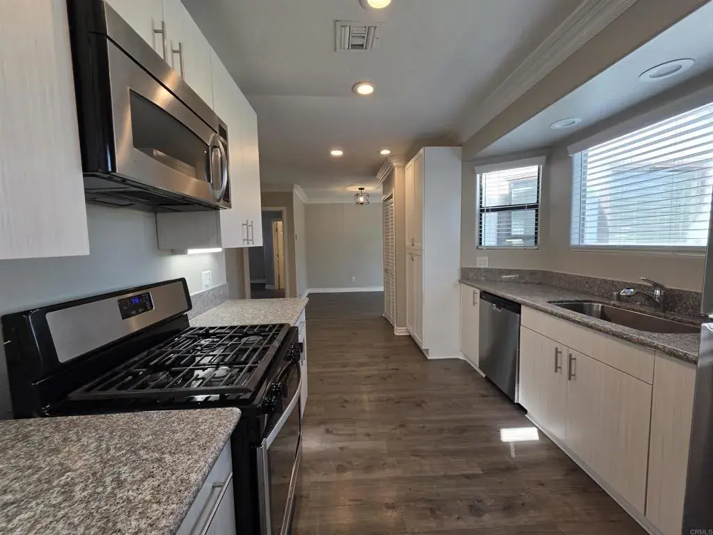 Are you looking for a single-story, spacious house for rent? This beautifully remodeled corner property truly has it all. This home features 3 bedrooms and 2 full bathrooms, including a spacious primary bedroom with its own private bathroom and a walk-in closet, as well as a large, open living room perfect for relaxing or entertaining. Enjoy laminate wood flooring throughout, modern baseboards, elegant crown molding, and contemporary lighting. Air conditioning, washer/dryer The updated kitchen offers new cabinets and stainless steel appliances, including refrigerator, dishwasher, gas stove, and microwave. The home is filled with natural light thanks to large windows with blinds and also includes a spacious yard, and a long driveway with ample parking.. and great curb appeal. Close to schools, shopping and transporation. Pet friendly and available now.
