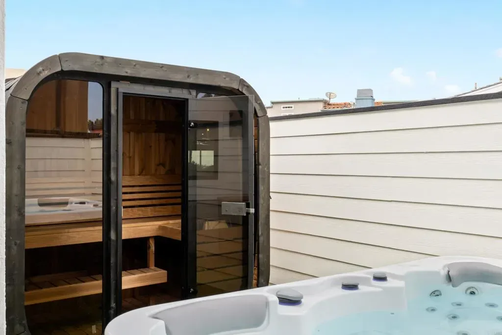 Best deal on Ocean Front Walk! The most private location on Ocean Front Walk! Entertainer’s Dream with Expansive Views! This fully remodeled 5-bedroom coastal retreat is the ultimate San Diego beach house. Designed for entertaining, the outdoor spaces feature multiple decks, a spacious patio with Bromic heaters, Sonos speakers, firepit with seating for 10+, a built-in BBQ, and a wellness area complete with hot tub, cold plunge, and sauna. Natural light pours through Fleetwood doors and Marvin windows, framing breathtaking views of Mission Beach, whitewater in Ocean Beach, boats cruising out to sea, and the cliffs of Sunset Cliffs illuminated at night. The main level boasts open-concept living with a custom kitchen featuring quartzite countertops, wood shaker cabinetry, Dacor appliances, wet bar, and seamless indoor-outdoor flow to the deck. Upstairs, the private primary retreat offers dual closets, a spa-like bath with marble finishes, and panoramic ocean vistas. Two additional bedrooms share their own bath with marble countertops and enjoy access to an east-facing deck for sunrise views. Downstairs, a secondary living/game room with wet bar provides additional entertaining space, along with two more bedrooms and a full bathroom. Newly laid pavers surround the property, creating a clean and modern coastal vibe. Parking for 3 cars included. This home is a rare opportunity to own a luxury entertainer’s paradise in one of San Diego’s most iconic beach communities.