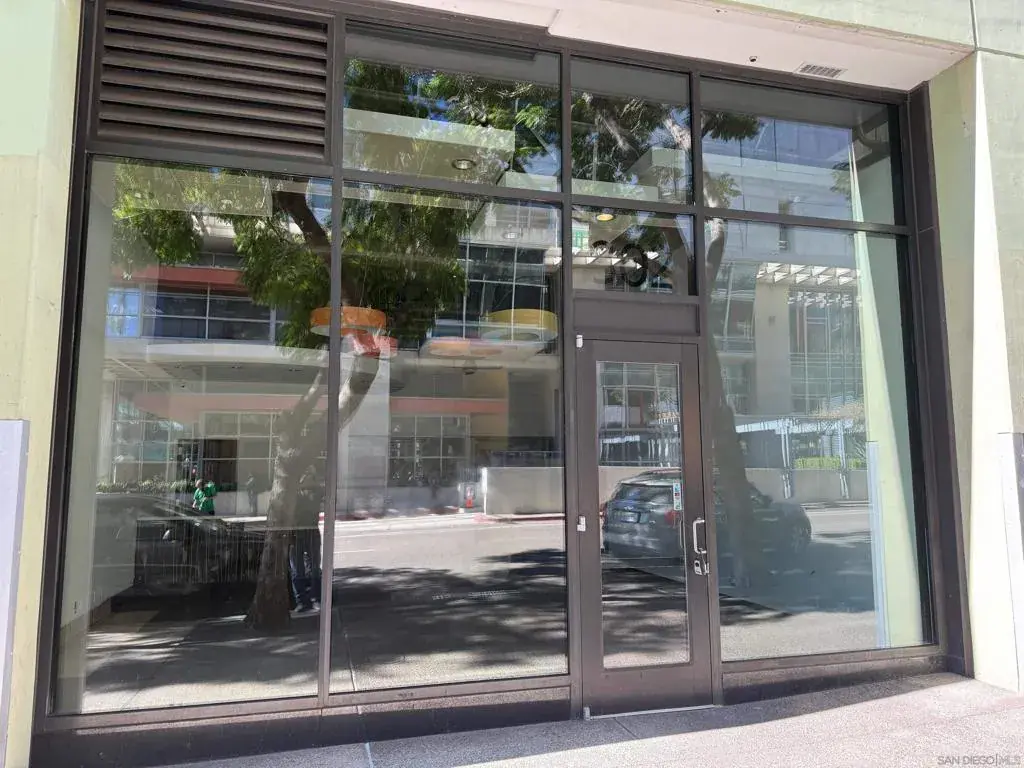 RETAIL STOREFRONT in the popular Icon Condominium Bldg. This vacant retail store front commercial condominium is located in the Petco Park area of East Village. Steps to Petco Park, home of the San Diego Padres with restaurants, coffee shops, microbrewery pubs and many residential condos and apartments in the neighborhood, this retail store front condo offers several business use opportunities, from a professional business, law firm, insurance company, dry cleaner pick-up and many other business uses. This could have tenant set up with base rent with NNN’s to have tenant pick up many of the expenses related to the commercial condo. Space includes floor-to-ceiling glass storefront, decorative drop lighting and can lights. Space has a built-in private bathroom, small office, storage room and additional upstairs storage.