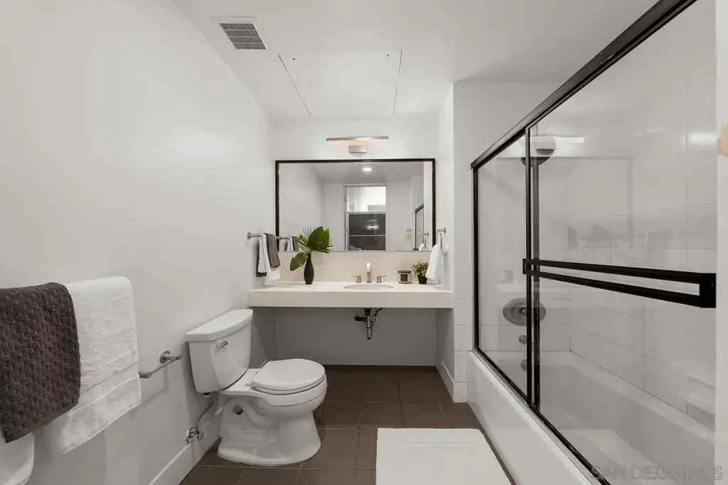 THE HOA IS 106% FUNDED!!!! Discover elevated urban living in this sophisticated 9th-floor studio perched above the heart of Little Italy. This thoughtfully designed single-level residence offers 674 sq. ft. of contemporary style, highlighted by soaring 10–10.75 ft ceilings and a full north-facing wall of glass that fills the home with natural light. From this vantage point, you can enjoy city and Point Loma views, along with a peek of the San Diego Bay to the west and a front-row look at planes making their approach into San Diego International Airport, a uniquely charming part of Little Italy living. The modern galley kitchen features quartz countertops, sleek cabinetry, and stainless-steel appliances. A rare 1.5-bath layout maximizes functionality, and the in-unit washer/dryer adds everyday convenience. Step out onto your private balcony to take in the neighborhood’s activity below. Additional highlights include 8′ interior doors, central A/C and heat, and one assigned parking space. A well-funded HOA provides added value by covering water, trash, and sewer services. Set within one of San Diego’s most vibrant neighborhoods, you’re moments from renowned restaurants, cafés, boutiques, the waterfront, and the beloved Saturday Farmer’s Market. This is stylish, walkable urban living at its best in Little Italy Proper, a perfect blend of style, walkability, and effortless urban living.