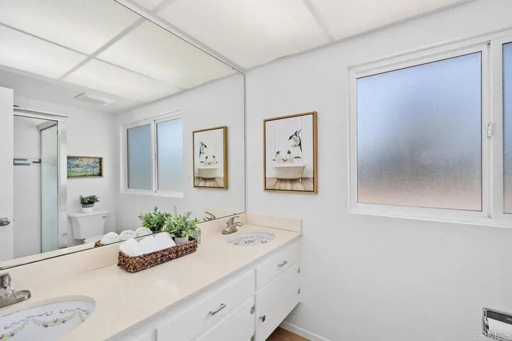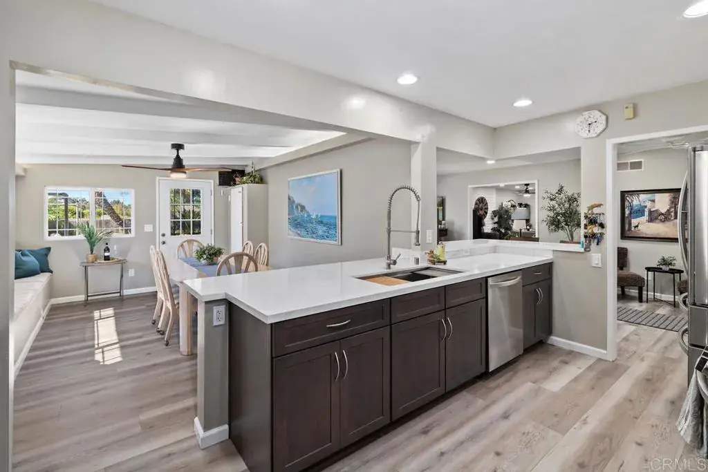 Just reduced! Lowest Price per SF in UC. Come see this Beautifully updated home located in the West side of University City! This spacious 5-bedroom, 3-bath University City home offers the rare combination of two primary suites, a first-floor primary bedroom & bath, and a highly flexible layout perfect for multigenerational living, work-from-home needs, aging in place, or long-term guests. Bright and inviting living spaces flow effortlessly to a large covered patio with skylights and ceiling fan along with a large private & lush backyard designed for indoor–outdoor living, entertaining, and everyday comfort. The remodeled kitchen (2021) features Quartz counters, LG stainless appliances, two breakfast bars, and an open-concept connection to the living and dining areas. Updated modern bathrooms and recent improvements— New central heat & A/C as well as newer LVT plank flooring, energy-efficient dual-pane windows, recessed lighting, new ceiling fans, fresh paint, and a newer roof—make this home truly move-in ready. Upstairs bedrooms offer peaceful treetop views, while the downstairs suite provides incredible versatility for in-laws, teens, guests, or a private home office. Additional highlights include RV/boat parking, a 2-car garage, workshop shed, and no HOA! Located across from Stanley Recreation Center, Stanley Aquatic Center, Spreckels Elementary, Stanley Middle & UC High, and minutes to UCSD, La Jolla Shores, Mission Bay, UTC, biotech campuses, and major freeways, this home delivers walkability, convenience, and community. Pictures do not do justice to this home – come and experience all the charm and character it has to offer!!