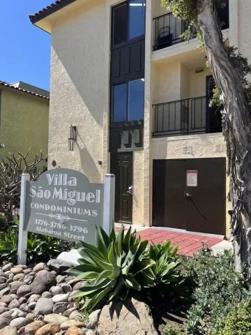 Villa Sao Miguel. 1 Bedroom, 1 Bath, 378 s.f. 3rd floor south facing condo with view located in the 55+ senior community of Villa Sao Miguel. Centrally located on the western edge of North Park, close to Hillcrest and the Morley Field area of Balboa Park. Close to historic classic home neighborhood, shopping, dining, recreation, etc. Nearby Morley Field area of Balboa Park offers swimming and tennis just a few blocks away and easy access to Balboa Park via south on Alabama Street. Wood style laminate flooring throughout, new refrigerator, new faux-wood horizontal blinds, and newer bathroom vanity. Grab bar in bath. Community Amenities: Elevator access, community Laundry Room, Billiard Room, Craft Room, Library, Room Fitness Room, and Community Room for events. Multiple indoor and outdoor sitting areas, Private off street parking (1 unassigned space, first come first served), 1/2 block to public transit. HOA is $403/month includes: water, trash, sewer, common grounds maintenance, landscape maintenance, building maintenance, limited insurance, pest control.