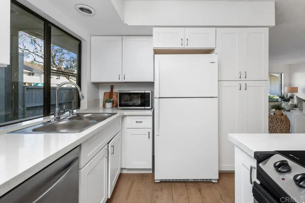 Bright, airy, and tastefully updated — this spacious corner location in Playmor Terrace West offers comfort, style, and convenience in one of San Diego’s most desirable locations. This 3 Bed / 1.5 Bath townhome offers a fabulous lifestyle. The updated and recently painted living room with fireplace and dining area have views to lush landscaping and French doors that lead to a private patio, creating a perfect setting for relaxation and entertaining. The primary living area opens to the updated kitchen with breakfast bar and views to the spacious patio. A full-size laundry room and renovated guest powder bath complete the first floor. Upstairs, the expansive primary suite features a generous closet space and access to the large balcony with lovely views of the neighboring jacaranda tree. Two additional carpeted bedrooms have views and one opens to the upstairs balcony. Additional highlights are the nearby South facing open space and two private parking spots—one covered carport and one uncovered space conveniently located next to the home. Playmor Terrace West is a well-maintained community with two resort-style pools, lush landscaping, and a peaceful neighborhood atmosphere. Conveniently located near UCSD, Westfield UTC for shopping & dining, major freeways and a short drive to iconic La Jolla Shores beach.