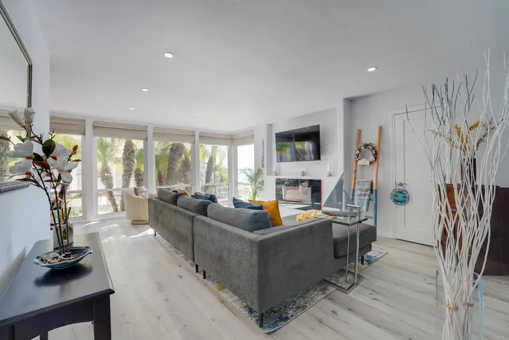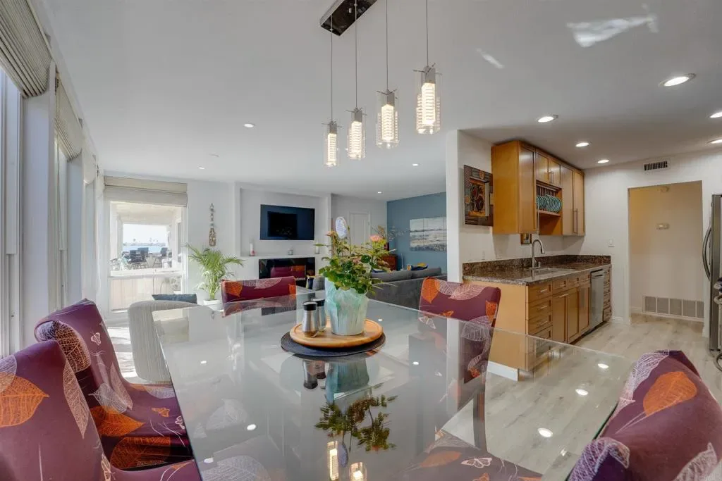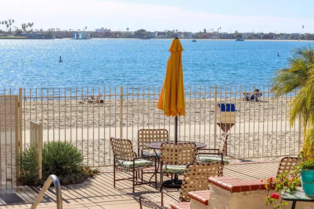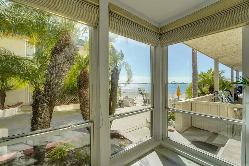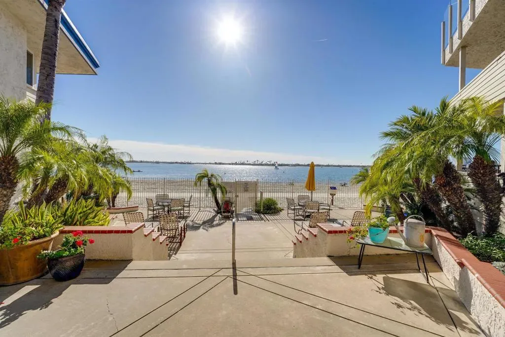 Welcome to Riviera Shores on Sail Bay, where waterfront tranquility meets the best of Pacific Beach living. This rare ground-floor 3BR/2BA condo is just steps from the sand and offers the ease of single-level living with no interior stairs. Bright corner windows frame beautiful bay views from the living and dining areas, while the spacious layout includes an updated kitchen, new LVP flooring, dual-pane windows and sliders, a generous primary suite, and two tastefully remodeled bathrooms with walk-in showers. The oversized covered patio creates seamless indoor-outdoor living and a front-row seat to the Sail Bay lifestyle. Residents enjoy a sparkling community pool, covered parking, in-unit laundry, and direct access to the scenic boardwalk stretching around the bay toward Crown Point and beyond. A rare chance to own a spacious bayfront home in one of Pacific Beach’s most desirable settings.