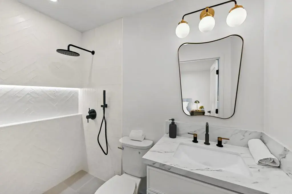 The seller is offering a credit toward a rate buy down for all buyers. This MUST SEE fully remodeled home with an open floor plan is in the heart of San Diego and blends modern style with inviting warmth. This home exudes curb appeal with new sleek black fencing, a sleek architectural garage door, and a welcoming courtyard complete with firepit seating and new landscaping—perfect for gathering with friends. Step inside to a top-to-bottom transformation featuring new LVP flooring, baseboards, doors, and black-framed windows that fill the open living space with light. Fresh paint inside and out, modern ceiling fans, and thoughtful design touches create a move-in-ready home that feels brand new. The living room flows seamlessly into a stunning chef’s kitchen and dining area, where beautiful light colored cabinetry, a custom tile backsplash, and an oversized waterfall island with bar seating become the centerpiece. Gold accents and new appliances complete the space with a touch of luxury. The private backyard, with fresh drought-resistant landscaping, connects to the front courtyard for a true indoor-outdoor lifestyle. Inside, the spacious primary suite offers an updated ensuite bath with a walk-in waterfall shower. Two additional bedrooms share a remodeled guest bathroom with a tiled shower/tub combo, perfect for family or guests. The large garage with fresh epoxy flooring adds both style and functionality, while major upgrades—including new plumbing and electrical—bring peace of mind. Located just steps from Mount Acadia Park and close to Tecolote Creek trails, schools, shopping, restaurants, and freeway access, this home is as convenient as it is beautiful!