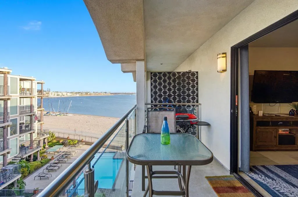Sail Bay is truly unmatched located steps to the boardwalk and water— This beautifully appointed 2-bedroom, 2-bath condo is ideal as a primary residence or a vacation retreat. It features an open floor plan, a modern kitchen with granite countertops and stainless steel appliances, and a spacious living area that opens to a bay-facing balcony. Built in desk area with additional storage. Primary bedroom offers a walk-in closet with build-ins. Both bathrooms have been tastefully updated. Enjoy water sports like kayaking, paddleboarding, and boating right outside your door. Rent equipment from Mission Bay Aquatic Center, stroll over to the Catamaran for brunch, dinner, or spa treatments, and enjoy live music just steps away. You’re also within walking distance to local shops, restaurants, and even SeaWorld’s nightly fireworks. Additional highlights include one secured underground gated entry parking space and storage, a well-maintained complex with locked entry, a community spa, and low HOA dues.