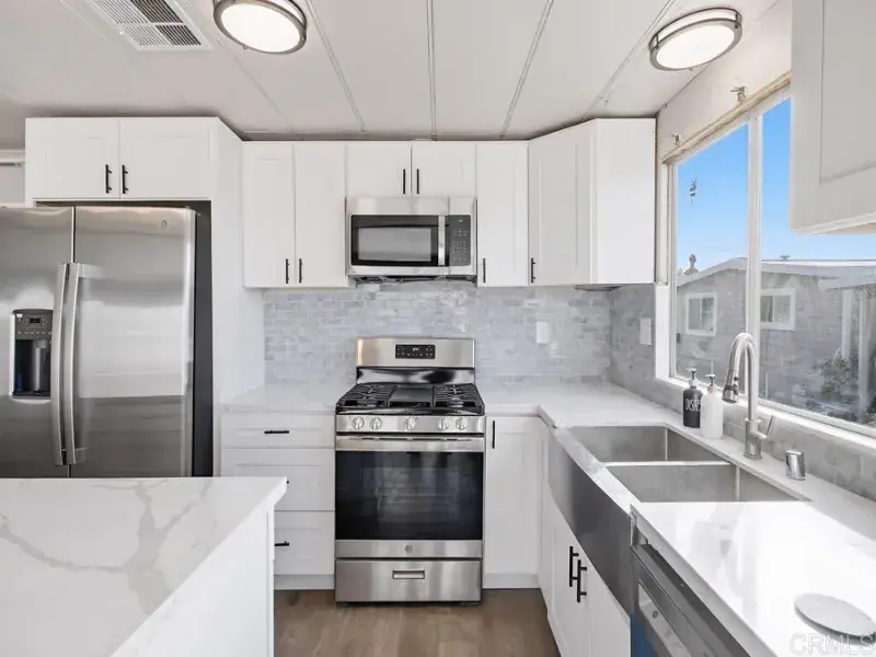 Homes like this don’t come around often. Renovated from top to bottom with high-end finishes and thoughtful design, this beautifully re-imagined home offers a level of quality rarely seen in this price range. The open floor plan makes the 980 square feet of living space feel twice as spacious. Nestled in one of Encanto’s most sought-after communities—an all-ages park known for its secure gated entry, long-term residents, great amenities, and low space rent—this home delivers comfort, convenience, and tremendous value. If you’ve been searching for the right home at the right price, this is it! Completely remodeled from top to bottom, this 2 bed, 2 bath home sits within Summit Ridge Resort, an all-ages community offering two sparkling swimming pools, a playground, and a clubhouse/rec room. Its central location puts you minutes from shopping centers, grocery stores, cafés, restaurants, schools, transit, and major freeways—ideal for easy commuting and everyday convenience. You’re close to everything yet tucked into a clean, peaceful, well-maintained park. Inside, the home feels fresh, clean, and truly like new construction. Every surface and system has been updated with modern materials and quality craftsmanship. The living areas feature brand-new LVP flooring, creating a durable and cohesive flow throughout. Fresh interior and exterior paint brighten the space and elevate curb appeal. A new state-of-the-art mini-split A/C system provides efficient cooling and heating—a must-have for San Diego living. The kitchen is a showpiece, boasting brand-new cabinetry with soft-close drawers, premium Calacatta quartz countertops, and matching stainless steel appliances. Upgraded door hardware, modern lighting, and clean lines make this a stylish and functional space to cook and entertain. Both bathrooms have been completely upgraded with new vanities, modern fixtures, updated tub/shower enclosures, and energy-efficient lighting and toilets. Behind the walls, the improvements continue. The home has all-new copper plumbing, a new gas line, and a new refrigerator water line—significant system upgrades that provide long-term peace of mind and reduce future maintenance. This is not just a cosmetic remodel; it is a thoughtful, comprehensive modernization for your comfort. Renovated in 2025, this attractive turn-key home blends style, comfort, and practicality. Whether you’re a first-time buyer, downsizing, or seeking a beautifully upgraded and affordable home in the heart of San Diego, this property is a rare find. With nearly 1,000 square feet of fully refreshed living space offered this home represents one of the strongest value plays in the county. And here’s the best part: You step into instant equity. This home was recently appraised at $226,000, yet is priced over 10% below the appraised value, giving buyers a rare opportunity to step into immediate equity from day one. In today’s market, that’s almost unheard of — especially for a home this updated in central San Diego.