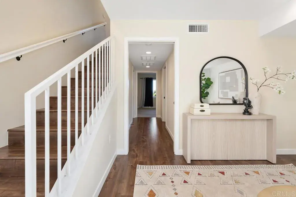 Perfectly positioned in one of Point Loma’s most desirable coastal corridors—with effortless access to the ocean, major freeways, and downtown San Diego—this modern 2-bedroom, 2.5-bath townhome delivers the ideal blend of style, comfort, and convenience. Offering 1,554 square feet of thoughtfully designed living space, the home is just minutes from the beach and all the vibrant amenities of Ocean Beach and Point Loma. The entry level features a welcoming family room, a spacious bedroom, a full bathroom, and a dedicated laundry area—an ideal layout for guests or a private home office. The second floor is the heart of the home, showcasing an open concept living area and an expansive kitchen equipped with stainless steel appliances, quartz countertops, and a large kitchen island. Retreat to the third-floor primary suite, where abundant natural light, a generous walk-in closet, and an ensuite bathroom with dual vanities await. Step out onto the large private deck and enjoy sweeping views. Additional features include central AC, two covered garage spaces wired for EV charging, and a private storage unit. Built in 2019, Upper Voltaire is a gated community of 28 residences with exceptional walkability to restaurants, coffee shops, and nightlife. Close to iconic San Diego destinations such as Sunset Cliffs and Liberty Station—and only minutes to downtown—4100 Voltaire Street offers a rare opportunity to enjoy coastal living without compromise.
