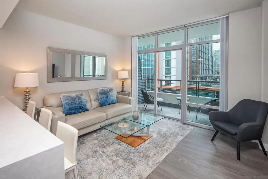 This beautifully renovated, south-facing two-bedroom at Acqua Vista is an incredible value. The residence was modified to open up the layout, with a fully remodeled kitchen, quartz countertops with waterfall edge, new cabinetry and new flooring throughout. Enjoy abundant natural light, a private balcony, and thoughtful upgrades that maximize space and flow. This home can be purchased furnished. Located in the vibrant Little Italy neighborhood, Acqua Vista was newly remodeled and offers valet parking, two lobbies, a fitness center, and a rooftop pool/spa terrace—all just steps from some of San Diego’s best dining and markets. Welcome to Acqua Vista, ideally located in the heart of Little Italy—one of Downtown San Diego’s most sought-after neighborhoods. Just steps away from the vibrant energy of India Street, this location offers access to some of the city’s best local dining and weekend experiences. Enjoy mornings at the Little Italy Mercato, brunch at Morning Glory, or dinner at restaurants like Davanti Enoteca or Born and Raised. Beyond food, the community atmosphere, frequent events, and proximity to the San Diego Bay make this neighborhood one of the most dynamic places to live in the city. Acqua Vista recently underwent a stylish community update, featuring a fresh coat of exterior paint, refreshed common areas, new halls and lobby areas, and new pool terrace. Residents enjoy exclusive amenities including valet parking—an uncommon perk in the Downtown market—two lobbies, a fitness center, meeting room, and a rooftop-style pool and spa deck on the 8th floor. This south-facing two-bedroom home stands out with a layout that balances functionality and comfort. Unlike many residences in Acqua Vista, this home features a thoughtfully opened-up kitchen, bringing in light and creating seamless flow between the kitchen, dining, and living areas. The fully renovated kitchen includes quartz countertops with waterfall edge, new cabinetry, and new flooring that continues throughout the residence. A private balcony extends from the living area—an added bonus not available in all floorplans. This exterior-facing home enjoys abundant natural light throughout the day thanks to its southern exposure, and the positioning ensures greater privacy compared to courtyard-facing units. With its recent updates and smart design, this home offers a modern feel while maintaining the charm and convenience of Little Italy living.