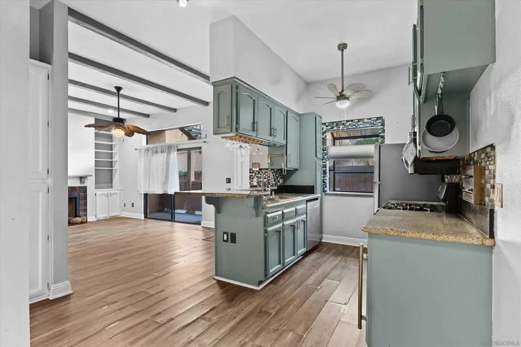 Welcome to this bright and spacious 2-bedroom, 2-bathroom condo located in the heart of San Diego’s highly desirable Talmadge neighborhood. Offering 956 square feet of comfortable living space, this beautiful unit at 4514 51st Street features vaulted ceilings, many cabinets for storage and an abundance of natural light. The inviting living room is anchored by a cozy fireplace surrounded by built-in wall units, making it a perfect spot to relax or entertain. Enjoy the beautiful San Diego weather from your choice of a front or large back open patio, which provide fantastic outdoor extensions to the home, measuring over 25’L X 9’ W. with an additional 12’X55” chip area for pet relief. Potential 3rd parking space. The property also offers the everyday convenience of central heating and a stackable washer and dryer right inside the unit. Situated within a charming and secure gated community, this home includes a private 1-car garage with direct access, plus an additional designated parking space. The location delivers outstanding convenience along with a relaxed residential vibe. You will be just minutes away from San Diego State University, vibrant local stopping & dining, Mission Valley shopping, and Snapdragon Stadium. With easy access to the 805/8/15 freeways. Also transit access and beaches only a short drive away, this Talmadge condo is a fantastic opportunity.