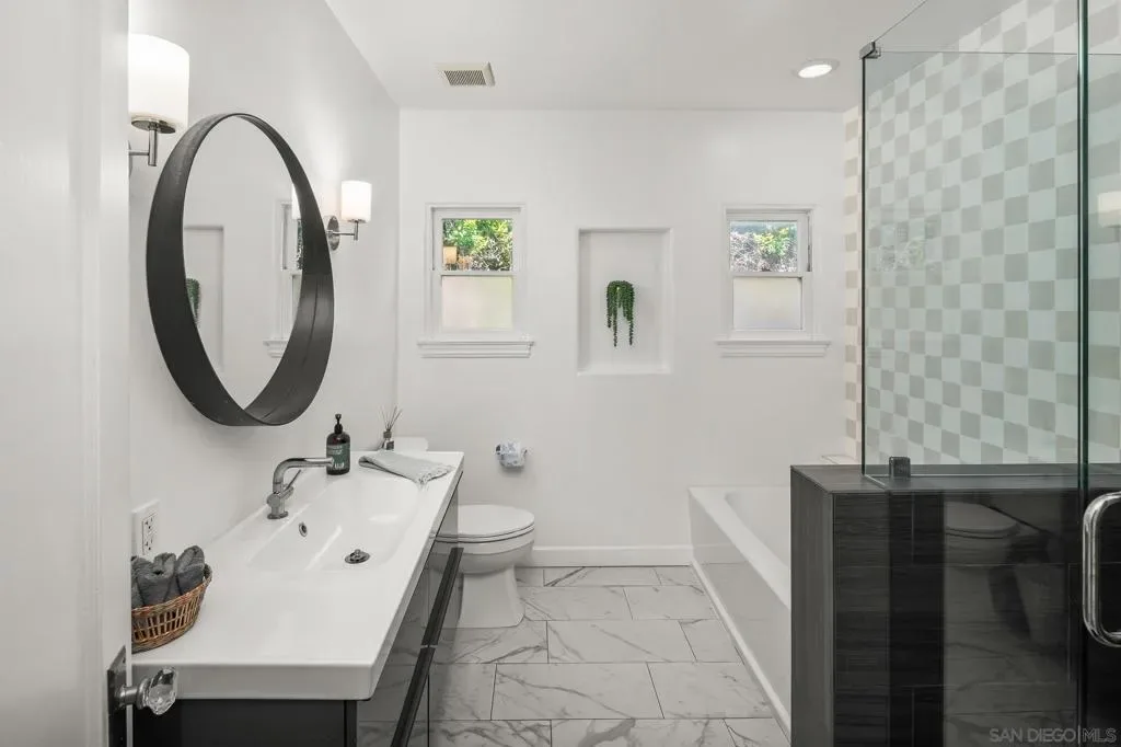 Welcome to this beautifully updated Kensington home, where timeless character meets modern convenience. Thoughtfully renovated throughout, the home features stunning hardwood floors, a bright and open layout, and a designer kitchen complete with sleek cabinetry, quartz countertops, and stainless steel appliances—perfect for both everyday living and entertaining. The living and dining spaces flow effortlessly, creating a warm and inviting atmosphere, while the updated finishes bring a fresh, contemporary feel to every room. The bathrooms have been tastefully redesigned offering a spa-like experience. A standout feature of the property is the versatile bonus space created from the converted garage. Above, a private guest unit provides excellent flexibility for extended family or visitors. Situated in one of Kensington’s most desirable pockets, this home is just moments from the vibrant restaurants, coffee shops, and boutiques along Adams Avenue, offering the perfect blend of neighborhood charm and urban accessibility. This is a rare opportunity to own a turnkey property in a highly sought-after location with added versatility.