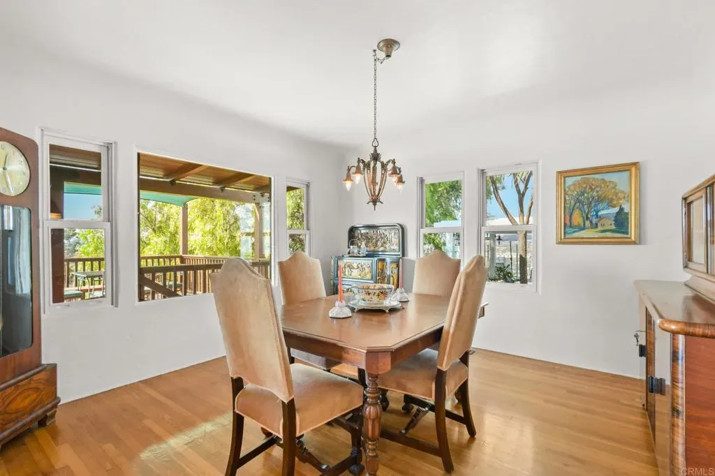 Perfectly situated atop a lush canyon, north of Adams, in Metro San Diego’s Normal Heights neighborhood, this beautiful Spanish-style makes for an entertainer’s paradise (and a cozy place where sunsets over the canyon become part of your daily rhythm.) With the stunning views, expansive deck, and cozy secluded feel, this property offers both a space designed to entertain and tranquil place to call home. The custom iron gate at the entry to the courtyard is the first glimpse at the craftsmanship you’ll experience throughout. Pops of color and sounds of flowing water in the courtyard are a welcome greeting to all who make their way through to the front door. Upon entering you will begin to see the views, through the glass panel wall, which make this home so special. With the glass panel wall open, you’ll experience a seamless indoor-outdoor living space. The deck spans the width of the home and features a glass panel railing that keeps the views of the valley and ocean unobstructed. At the south end of the deck, an inset hot tub invites you to relax and enjoy the green valley view. At the north end, a pergola covered dining area framed by an updated wooden railing offers another space to entertain. With its functional gas fireplace, original built-ins, and thoughtful updates throughout, this home offers both comfort and charm. Inside, the Craftsman-style kitchen features upgraded appliances, including a Dacor range and Bosch dishwasher, complementing the home’s warm architectural details. The upstairs primary suite offers a private ensuite bath, ample closet space, and western views from the window. One of the bedrooms opens directly onto the deck through dual sliding doors, connecting to the spa and generous outdoor entertaining area. Every corner of this home was designed to celebrate its setting — where timeless character meets everyday comfort, and evening watching the sunset becomes a daily luxury.