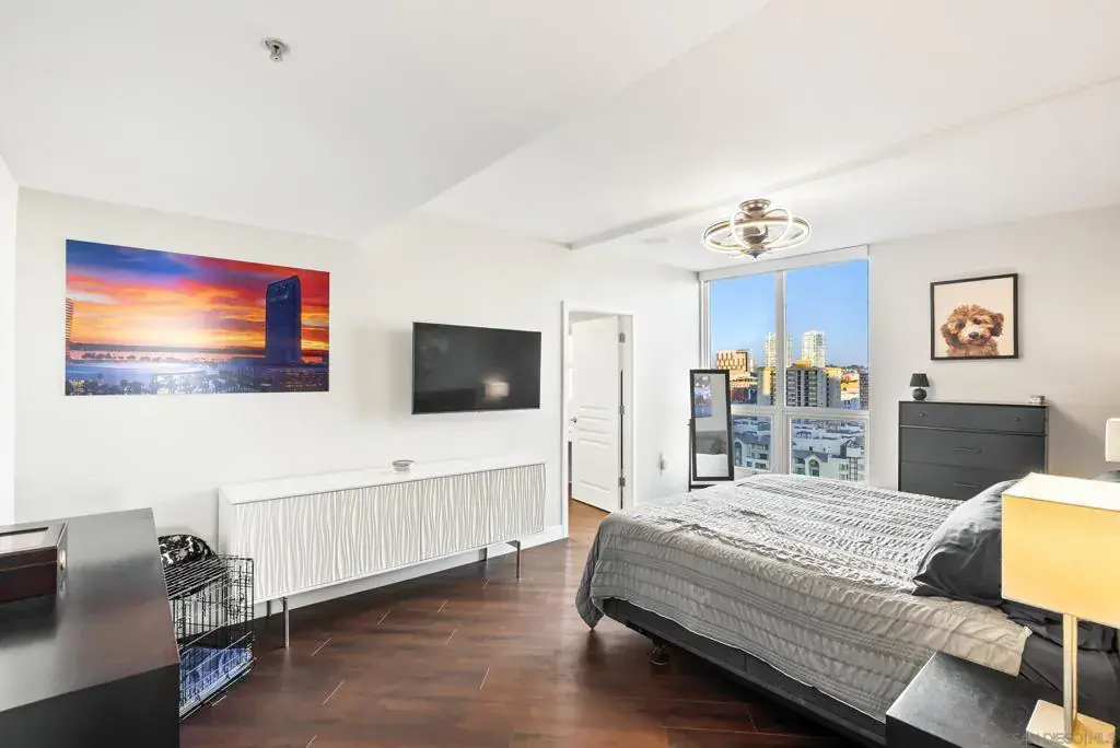 Sweeping bay and city views set the stage for this beautifully remodeled Marina District residence. This spacious 2-bedroom, 2-bath home offers two private patios and two parking spaces, each with its own EV charger. Over $200,000 in high-end upgrades completed in 2023 include custom cabinetry with enhanced storage, continuous flooring throughout, updated lighting and plumbing fixtures, and premium appliances. The modern kitchen features luxury tile finishes, quartz countertops, a large pantry, an Alexa-enabled refrigerator, and a smart oven. Additional highlights include a custom walk-in closet, fireplace, blackout shades, and Wi-Fi/Bluetooth color-changing ceiling lights controlled via SmartLife or SmartThings. Ideally located in the heart of the Marina District, Horizons offers an unbeatable downtown lifestyle just steps from the New Children’s Museum, Martin Luther King Jr. Promenade, Seaport Village, Petco Park, the Gaslamp Quarter, San Diego Bay, and the Marina. A children’s park and dog park are located directly behind the community. Resort-style amenities include a pool, spa, BBQ area, fitness center, concierge, security, billiard room, conference and club rooms, and 16 guest parking spaces. Everyday convenience is built in with retailers just an elevator ride away, including a bank, dry cleaner, Postal Annex, coffee shop, and more. The building has been refreshed with beautifully remodeled lobbies, upgraded hallways, and new unit doors with keypad access, all within walking distance to transit, dining, shopping, and Ralphs Signature Market.